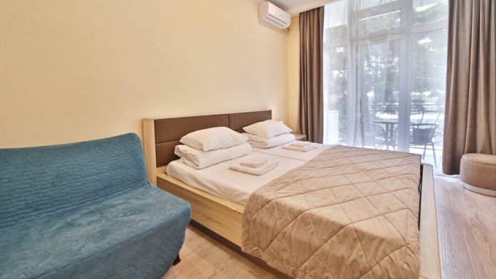Двухместный номер Комфорт в новом жилом комплексе бизнес класса «Покровский Парк» в самом низу микрорайона Светлана, вблизи с парком Дендрарий, Сочинским цирком и центральной набережной. Парковки гостевой на территории нет. Но рядом с нами есть платная парковка и множество различных кафе, столовых, ресторанов, а также супермаркеты с кулинарией. Также в корпусе 10Д есть кофейня с завтраками на 1 этаже.