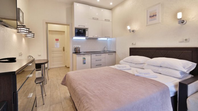 Улучшенный Стандарт с кухней в новом жилом комплексе бизнес класса «Покровский Парк» в самом низу микрорайона Светлана, вблизи с парком Дендрарий, Сочинским цирком и центральной набережной. Парковки гостевой на территории нет. Но рядом с нами есть платная парковка и множество различных кафе, столовых, ресторанов, а также супермаркеты с кулинарией. Также в корпусе 10Д есть кофейня с завтраками на 1 этаже.
