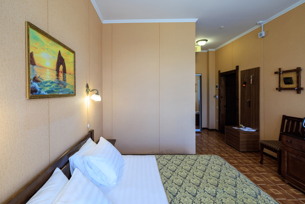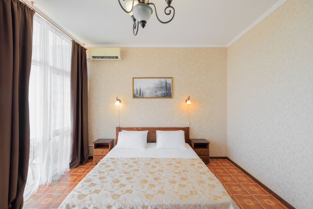 Мы заботимся о вашем сне и настроении. На кровати с ортопедическим матрасом вас ждет свежее постельное белье из натуральных тканей, а утро начнется с чашечки кофе, приготовленной вами, под аккомпанемент великолепного вида из окна — на горы, парк или ласковое море.