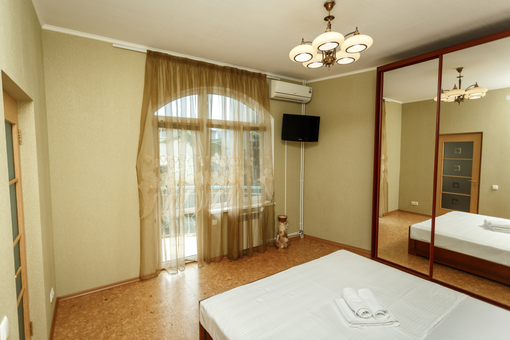 Гости могут забронировать номера категории Люкс. Из каждого номера неповторимо открывается панорамный вид на море. Во всех номерах есть кондиционер, чайник, холодильник, фен, тапочки, комплекты банных полотенец.
