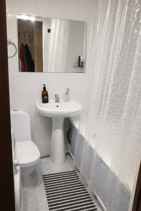 • Совмещённый санузел с полноценной ванной, стиральная машина, средства гигиены