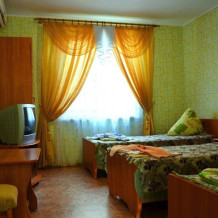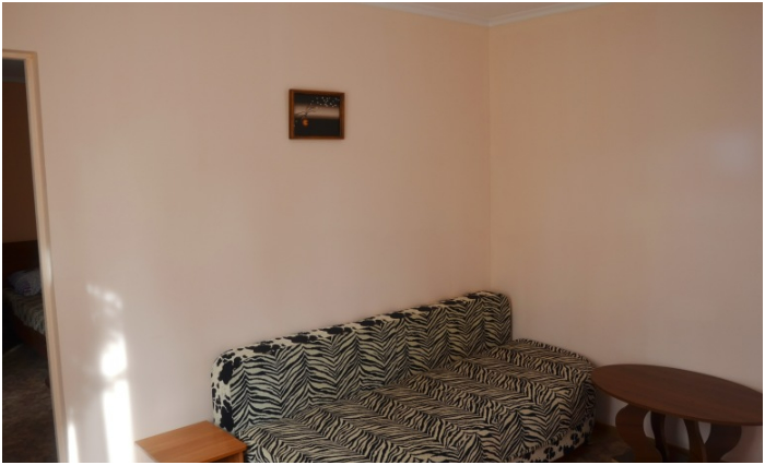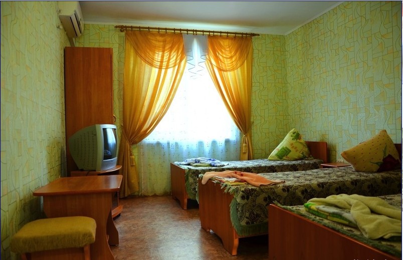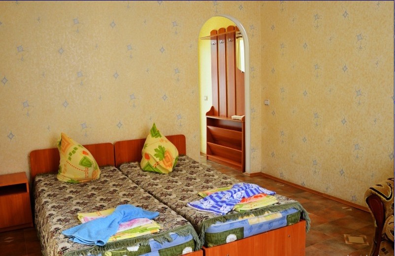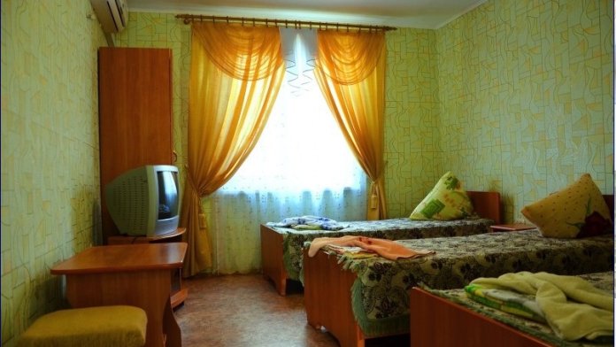 Пляж расположен в двухстах метрах от пансионата . Он огромный, песчано-галечный. На пляже установлены навесы для тени, кабинки для переодевания, туалет.