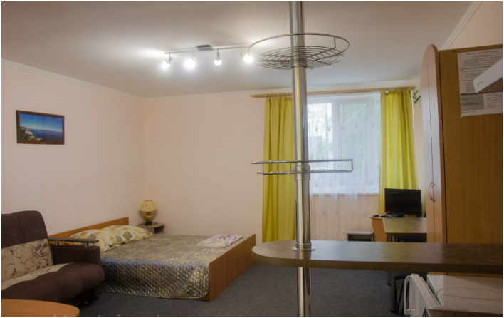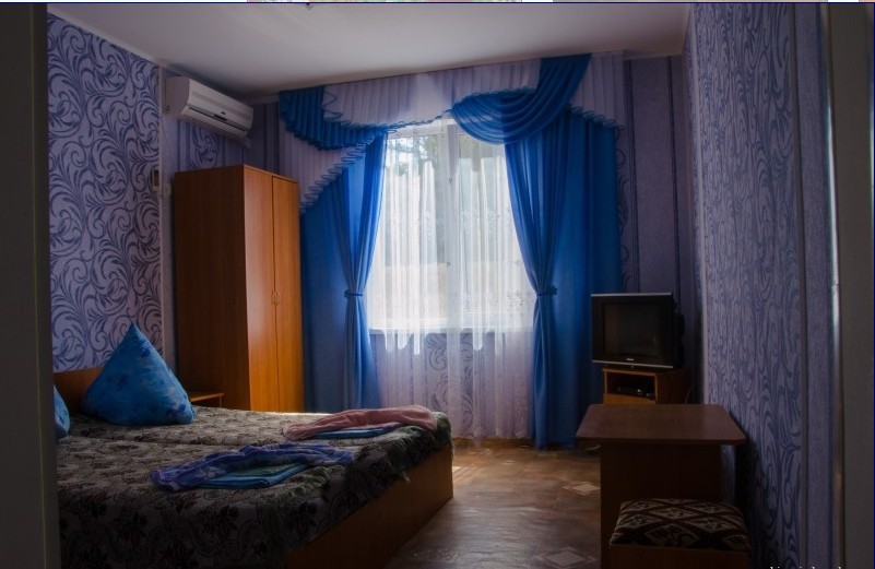 Пансионат расположился у подножья можжевеловой рощи, отделенный от нее руслом реки Канака и дорогой, очерченной по обе стороны кипарисами.