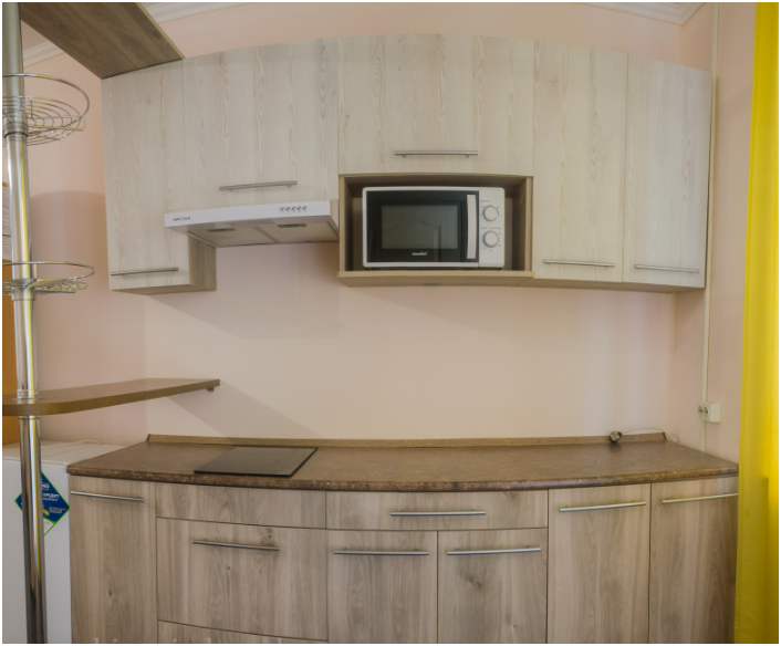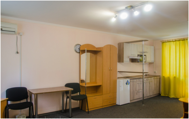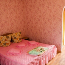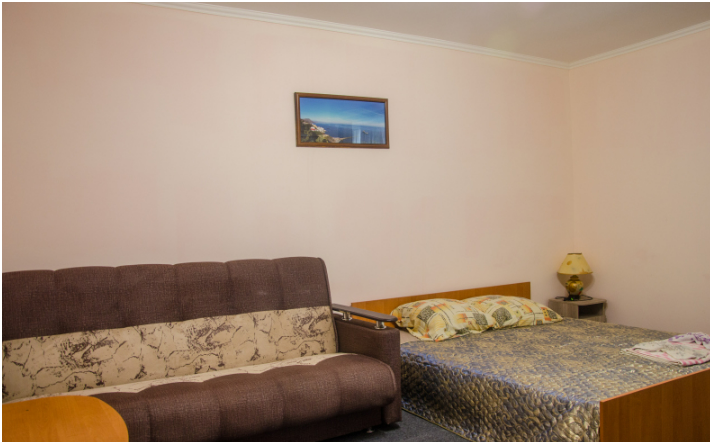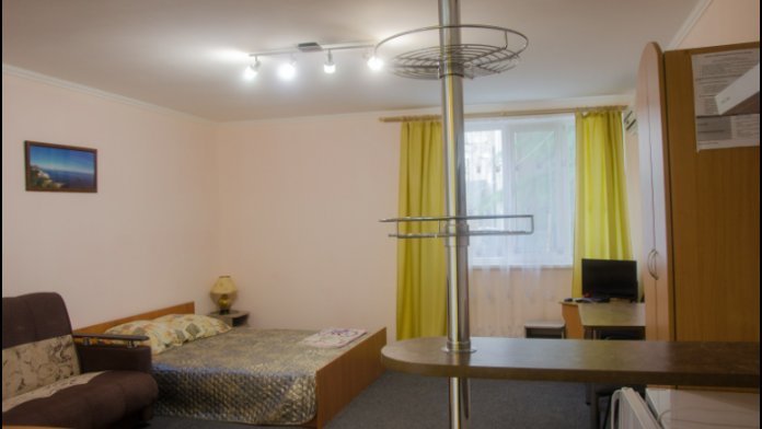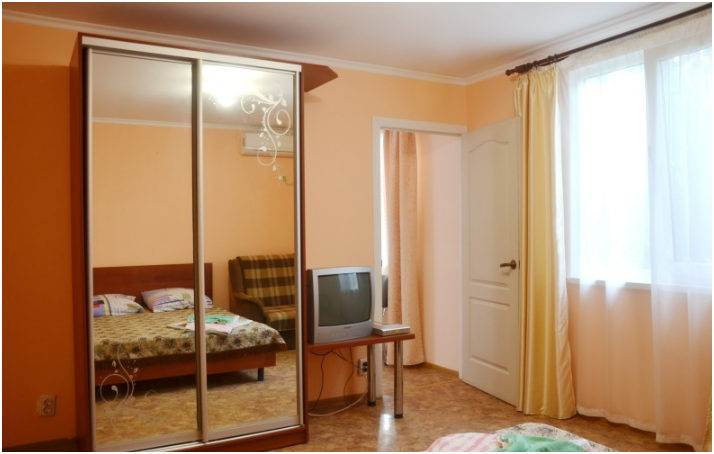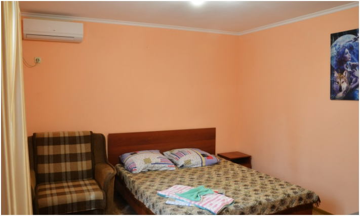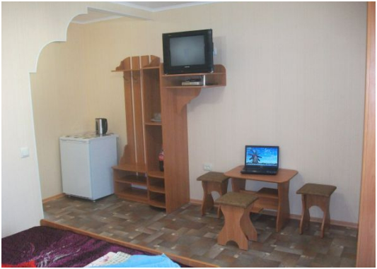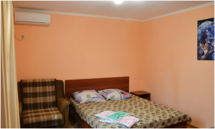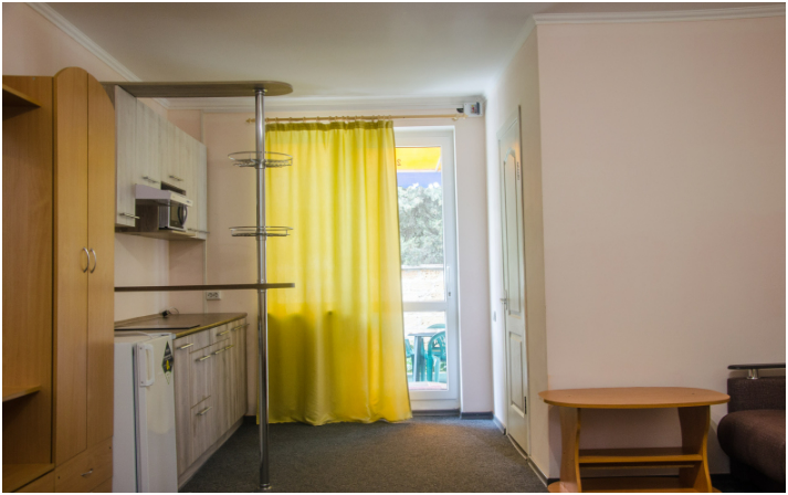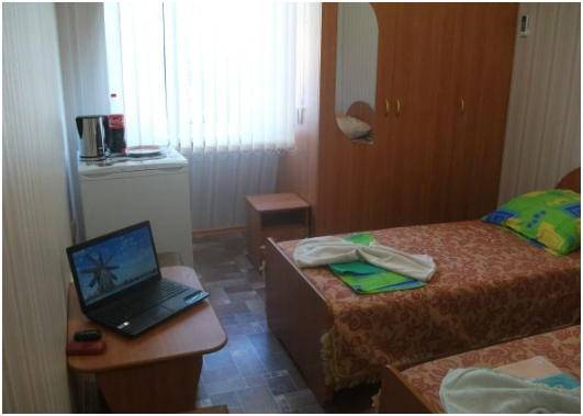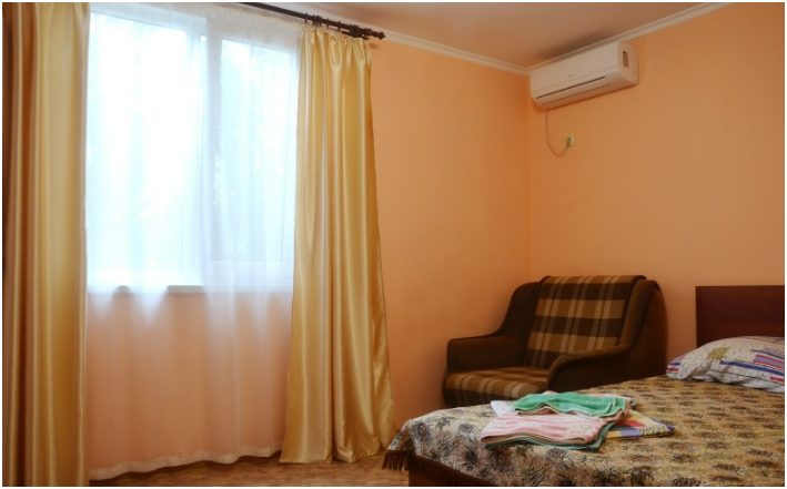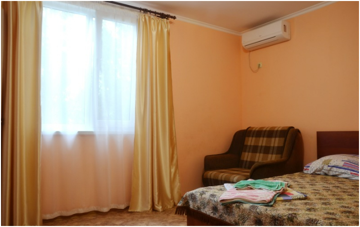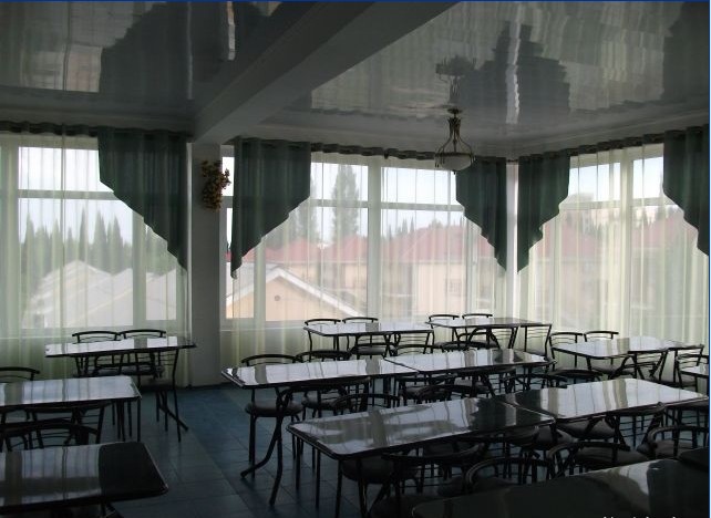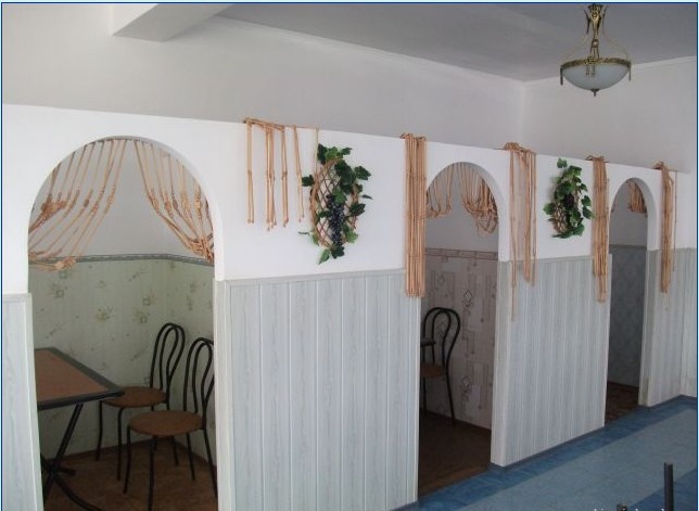 В пансионате имеется собственный дворик со столиками в тени платанов и лужайкой. Территория засажена кипарисами, пальмами, кустами лавровишни, розмарина и туи, а так же розами и различными цветами.