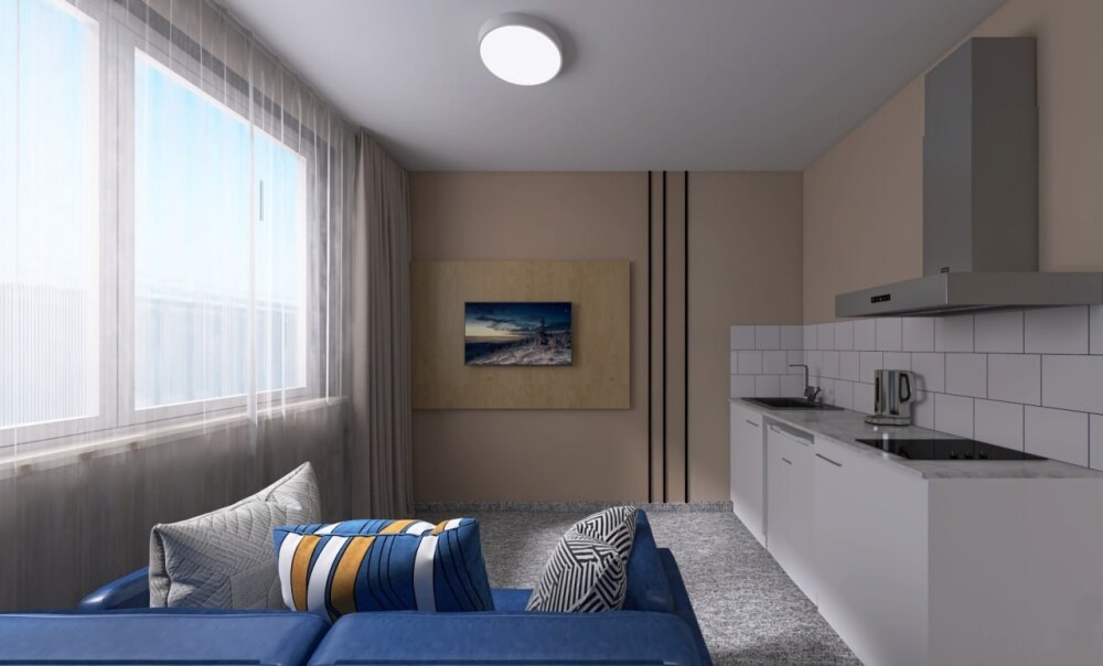 В номере есть оборудованная мини-кухня, необходимая посуда для приготовления пищи и пространство для работы. Гостей отеля порадует премиальное постельное бельё и косметические принадлежности. Один ребёнок до 6 лет - можно без отдельного спального места.
