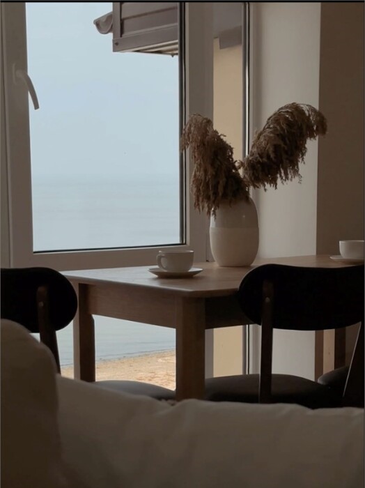 Дизайнерский интерьер, панорамные окна с видом на море. Кухонная зона в каждом номере.