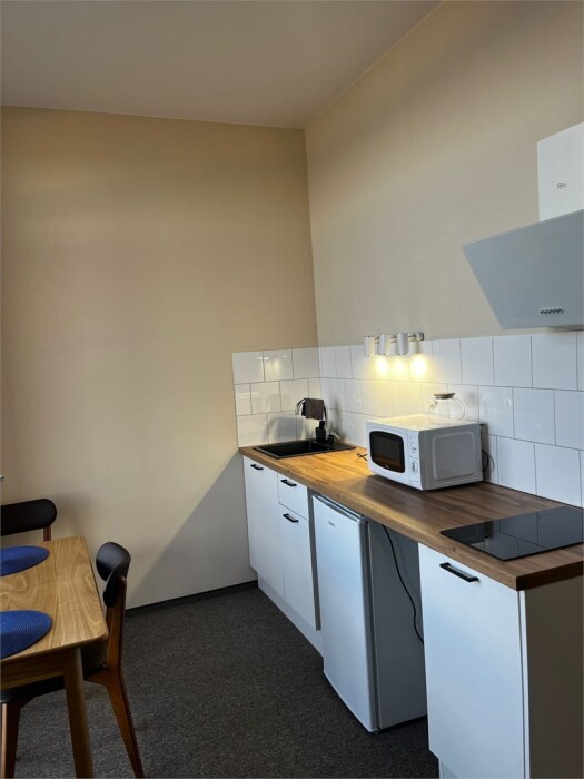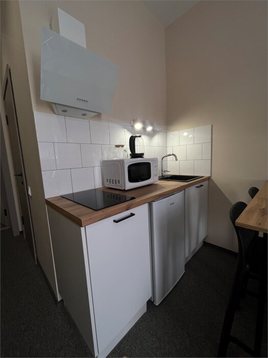 Уютный однокомнатный номер площадью 17 кв. м , оснащённый всем необходимым для комфортного проживания. В номере установлена двуспальная кровать размера queen-size, также есть оборудованная мини-кухня, необходимая посуда для приготовления пищи и пространство для работы. Для Вашего удобства предоставляются постельное бельё премиум-класса и косметические принадлежности. Один ребёнок до 6 лет - можно без отдельного спального места.