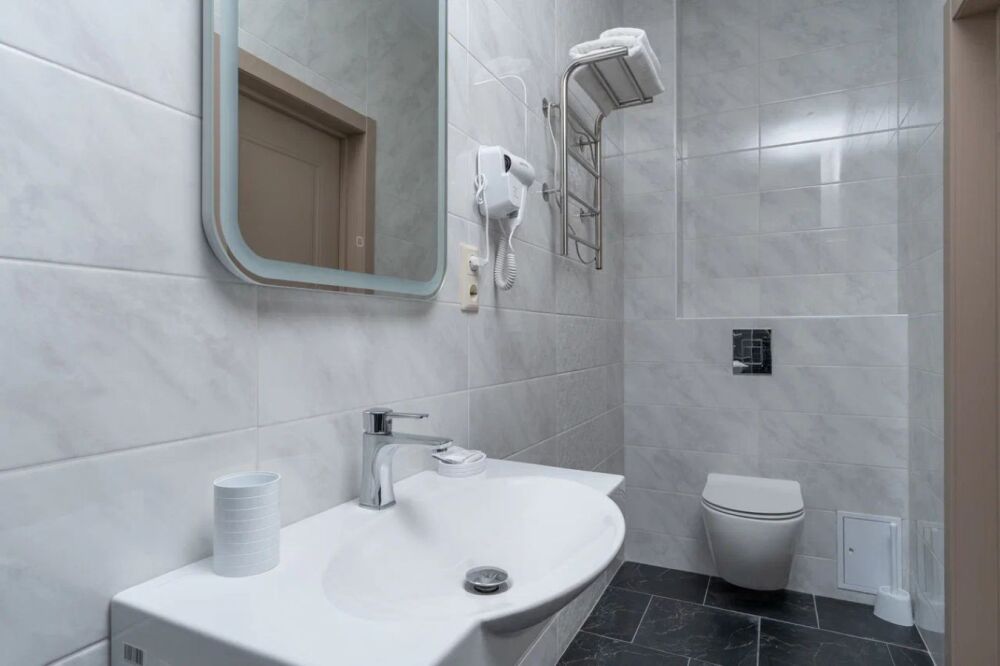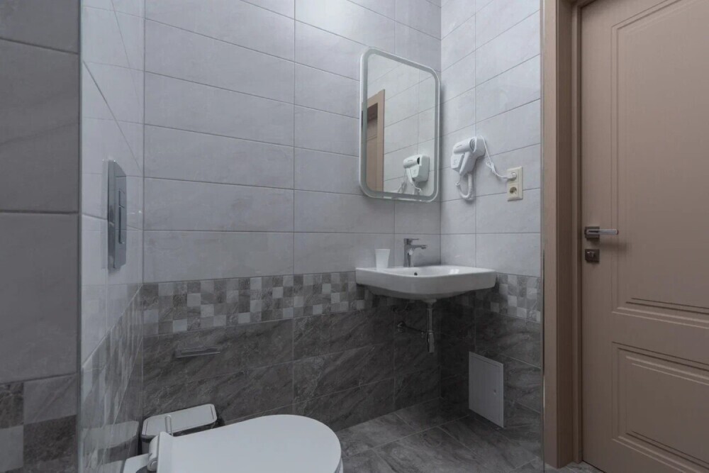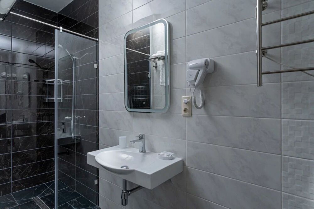 Номер, площадью 27 м² оснащен: двуспальная кровать с ортопедическим матрасом и мягким изголовьем, односпальная кровать, кресло-кровать (доп.место оплачивается отдельно), прикроватные тумбочки, шкаф, сейф, внутренний телефон, телевизор Smart TV, холодильник, электрический чайник, сплит система, интернет, оборудованное рабочее место, высокосортной бесплатный Wi-Fi. В ванной комнате: классический душ, санузел, умывальник, фен, комплект полотенец.
