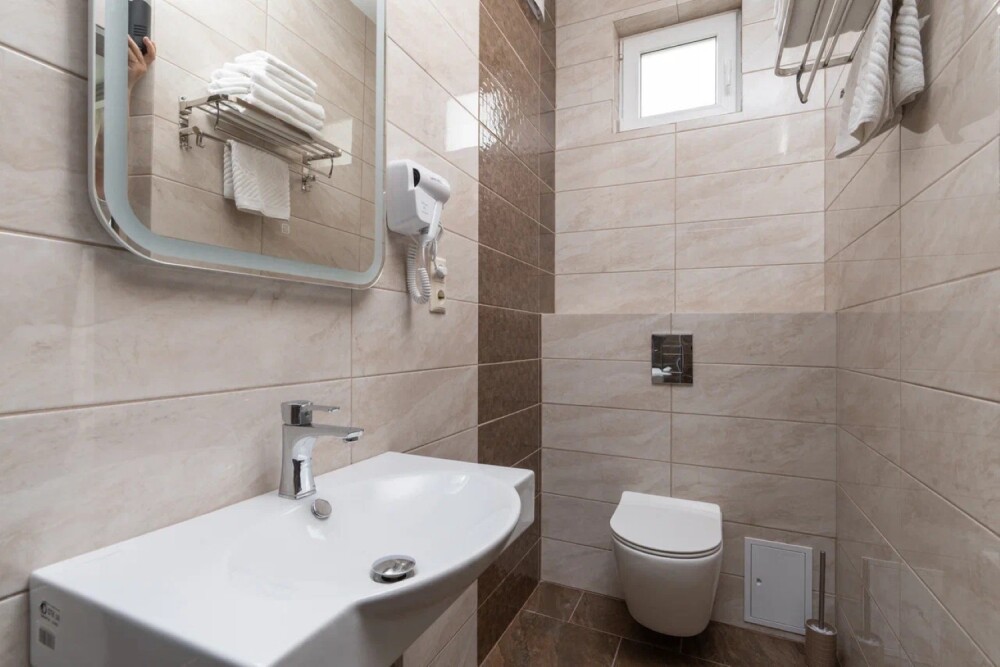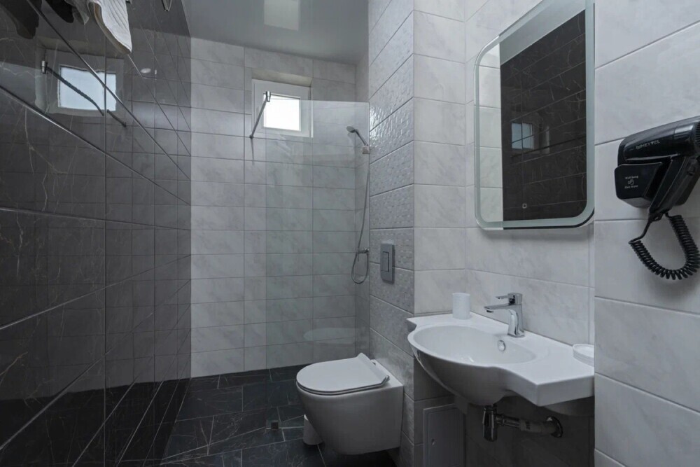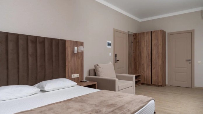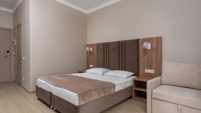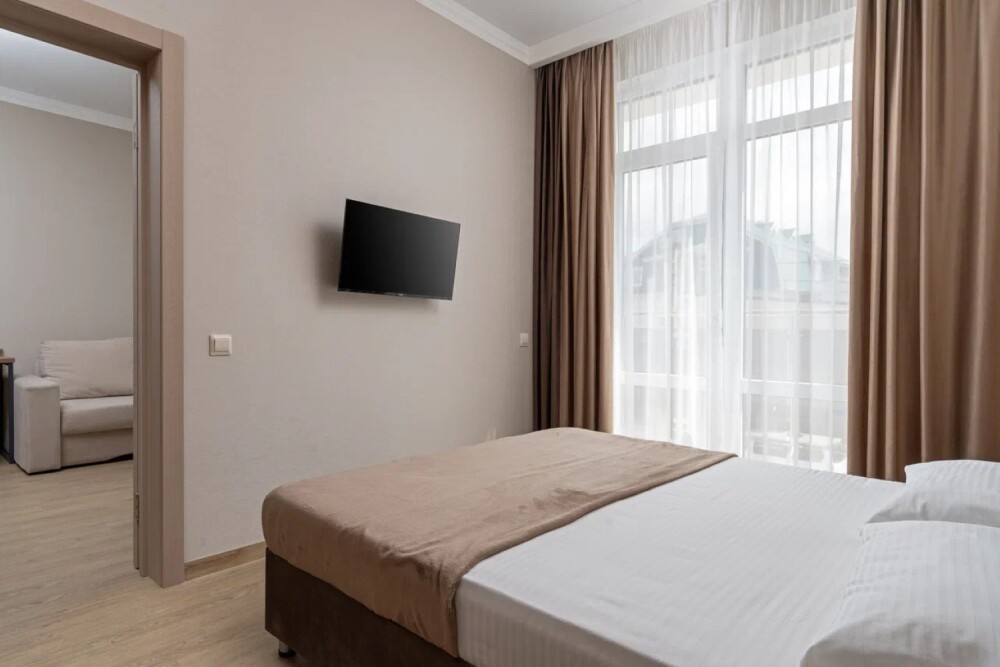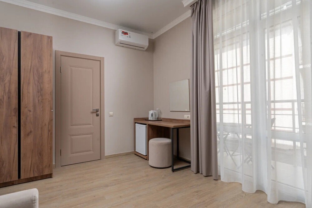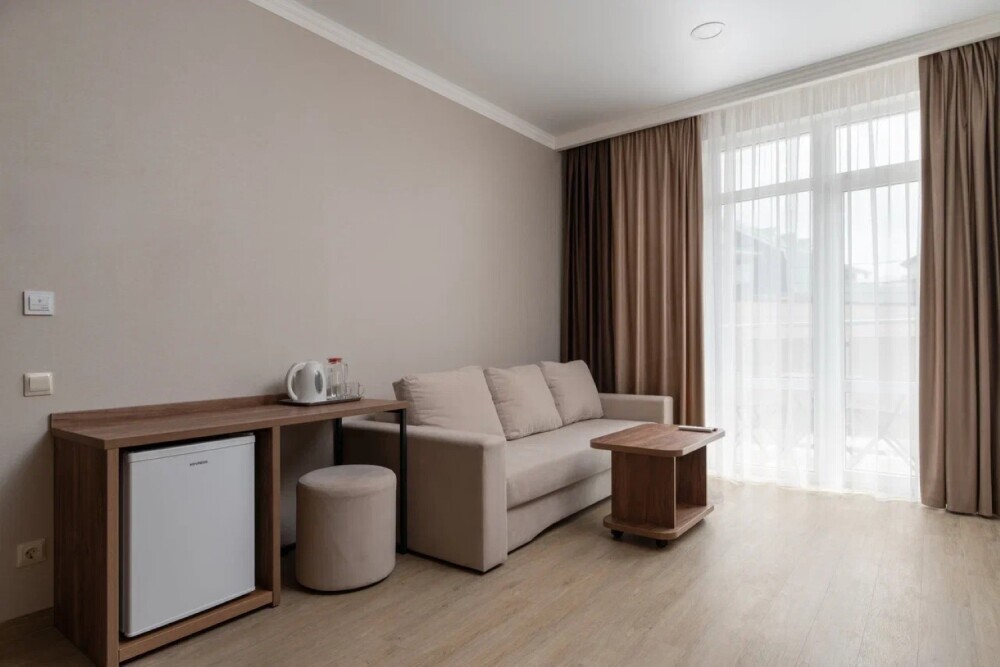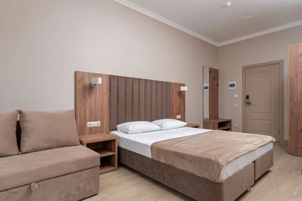 Гостиница состоит из одного трехэтажного корпуса. Гости могут забронировать номера категорий Комфорт и Семейный. В каждом из них есть все необходимое для комфортного проживания: двуспальная кровать с ортопедическим матрасом и мягким изголовьем, прикроватные тумбочки, шкаф, сейф, внутренний телефон, телевизор Smart TV, холодильник, электрический чайник, сплит система, интернет, оборудованное рабочее место, высокосортной бесплатный Wi-Fi. В ванной комнате: классический душ, санузел, умывальник, фен, комплект полотенец. Имеются все банные и гигиенические принадлежности: шампунь и кондиционер для волос, гель для душа, одноразовое мыло. На каждом этаже есть утюг и гладильная доска. В некоторых номерах есть балкон.