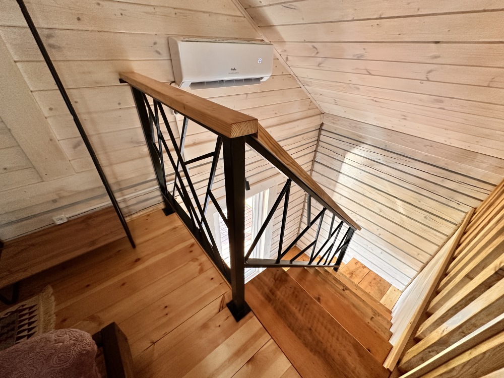 На 1 этаже: гостиная, полностью оборудованная кухонная зона (холодильник, эл. плита 2 конфорки, свч печь, чайник, комплект посуды). Стиральная машина, смарт телевизор, Wi-Fi, диван раскладывается на 2 полноценных спальных места 158*200. Санузел с душевой кабиной (комплект полотенец для каждого гостя, фен, жидкое мыло, гель для душа, шампунь, кондиционер, зубной набор, туалетная бумага, ватные палочки и ватные диски). Терраса с уличной обеденной зоной.