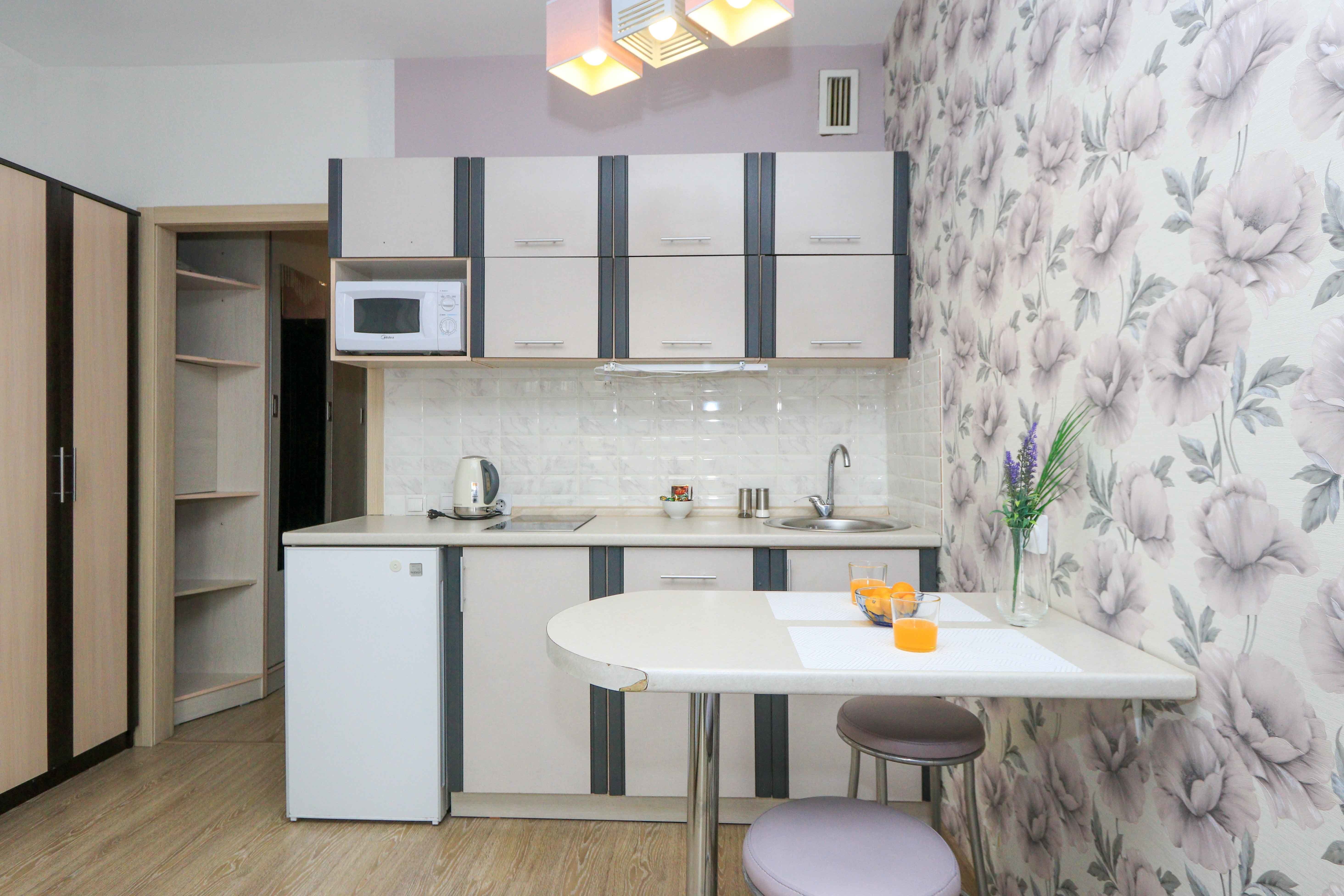 Студия оснащена всем необходимым для комфортного проживания. Двухспальная кровать с ортопедическим матрасом. Телевизор SMART TV. Высокоскоростной wi-fi. Посуда для приготовления пищи.