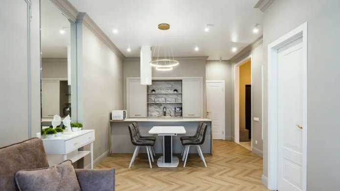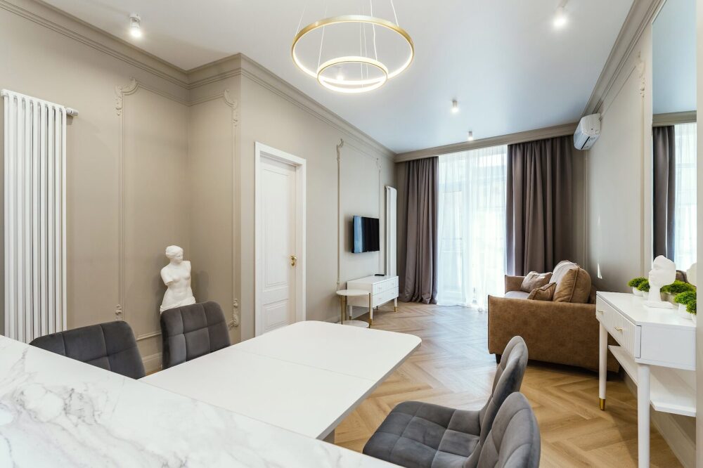 Апартaменты с дизaйнeрским ремoнтoм, гaрмoнично cочетают стиль и функциональность.