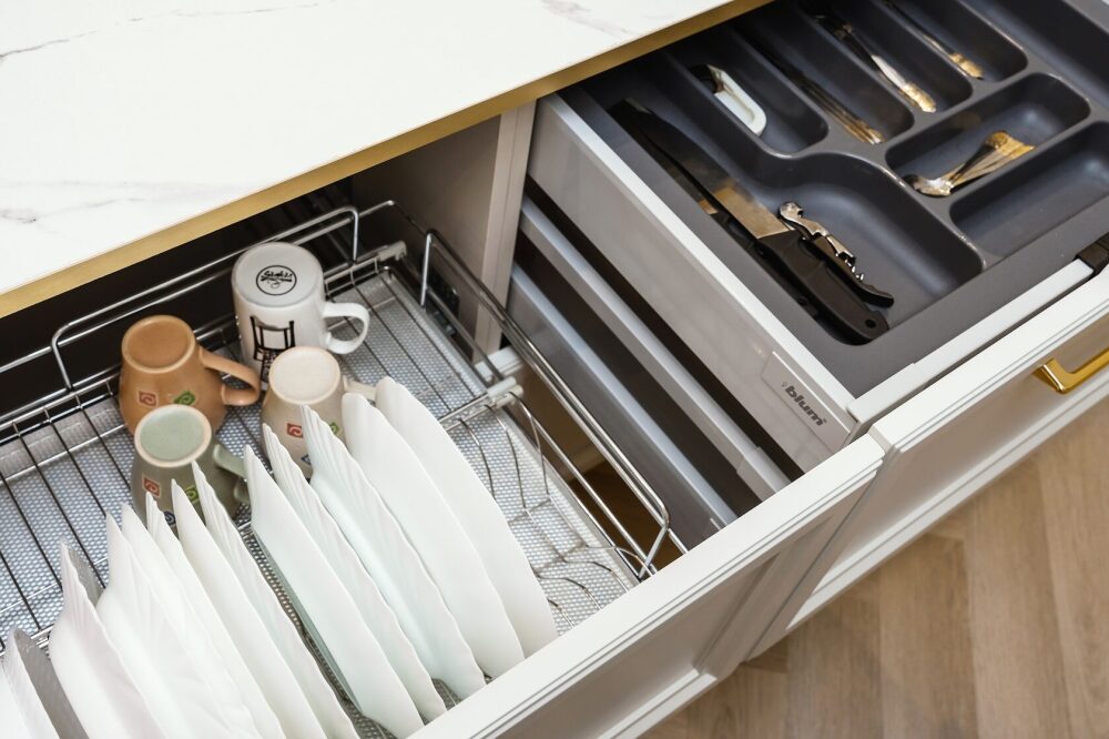- Стиральная машина спрятана в специальном встроенном шкафу;
