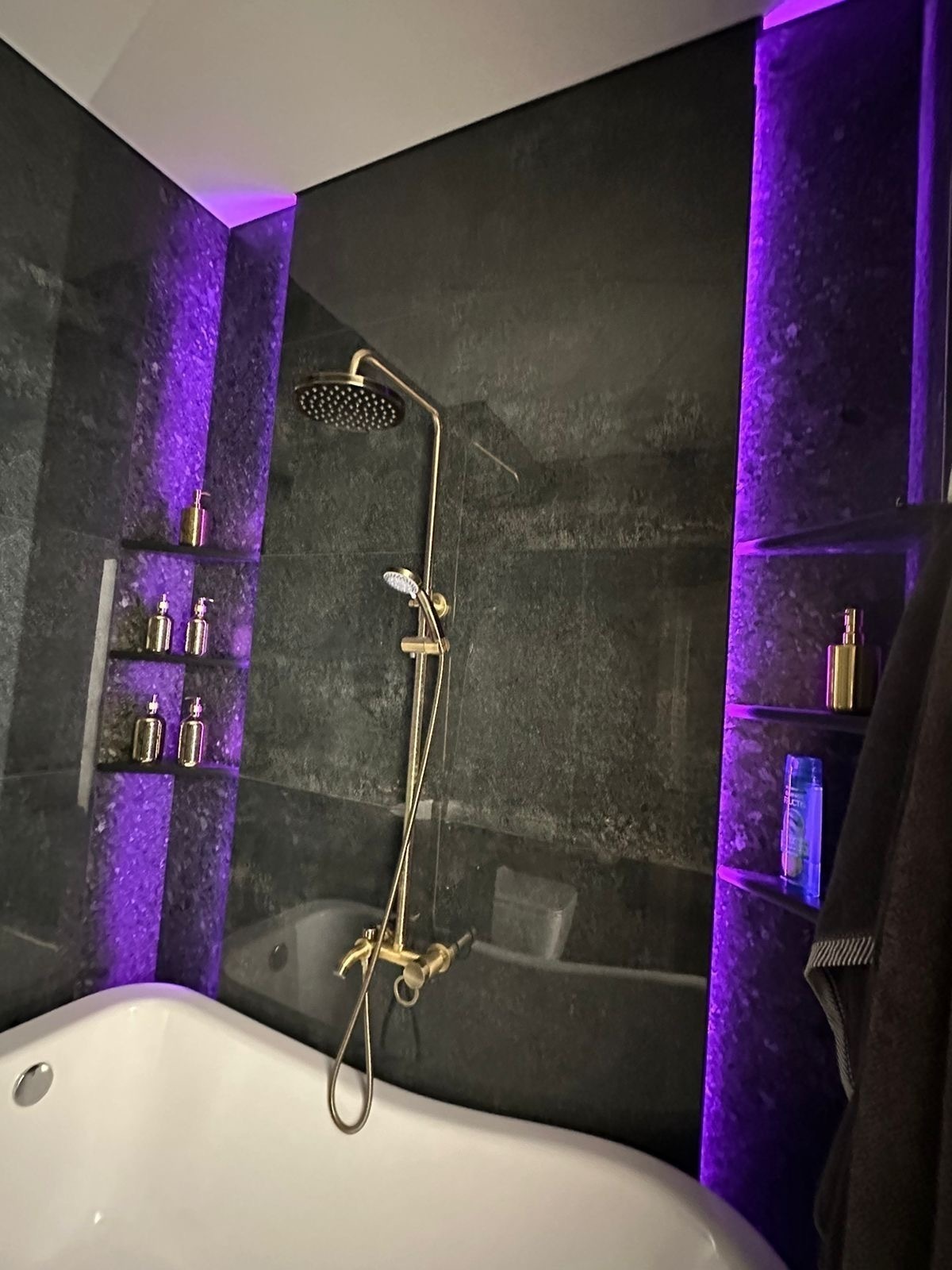Апартаменты укомплектованы всей необходимой техникой: кондиционер, посудомоечная машина, стиральная машина, микроволновая печь, плита холодильник, электрический чайник, 2 ТВ, бесплатный высокоскоростной интернет, Wi-fi, утюг, гладильная доска, сушилка для белья, мощный фен.
