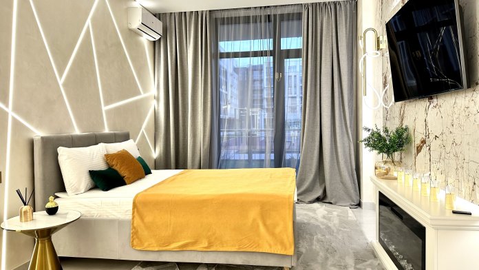 Уютные апартаменты в жилом комплексе «Атлантис» прямо на набережной, на 1-й линии морского побережья. Уникальное расположение комплекса. Охраняемая территория с видеонаблюдением, современные детские площадки на территории комплекса, кафе, магазинчики.