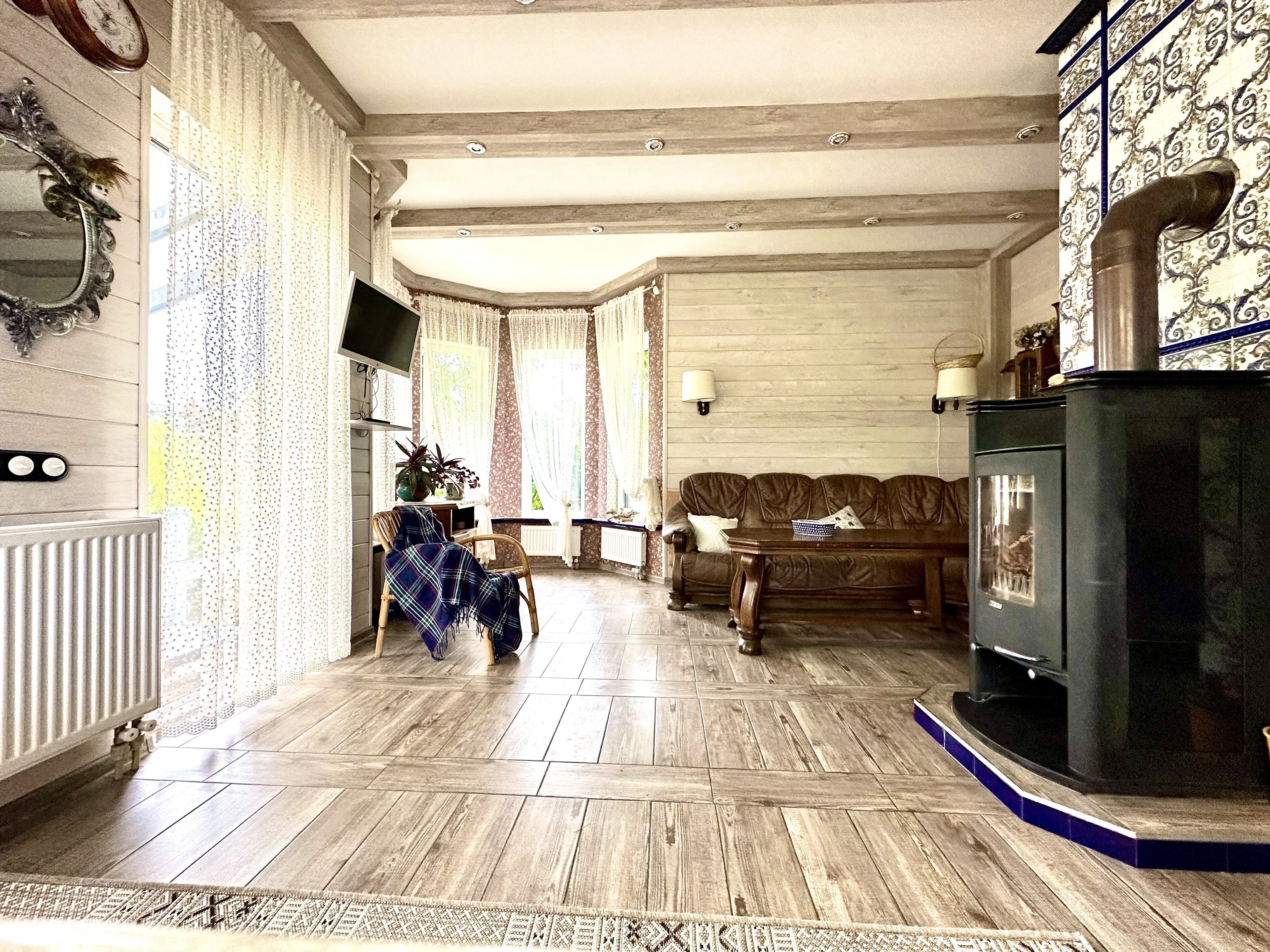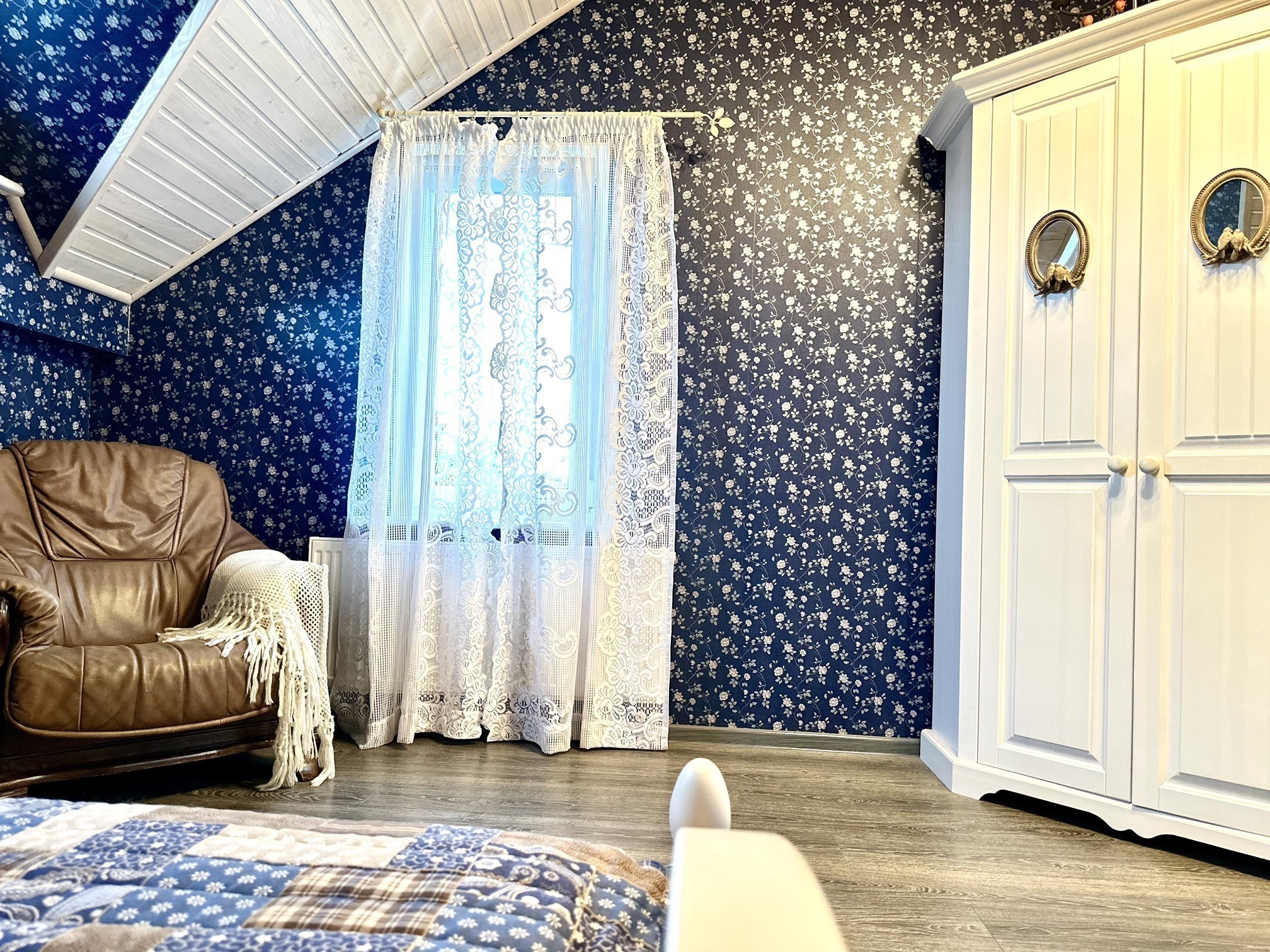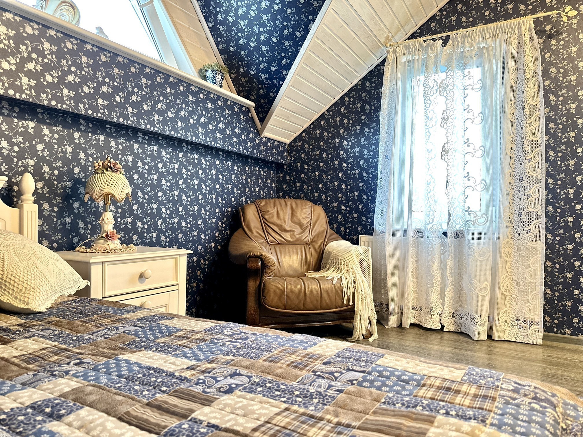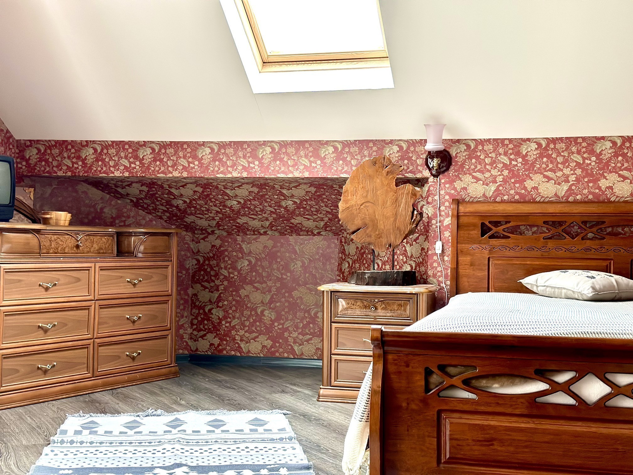 2 этаж: 1 спальня с печью и большой двуспальной кроватью. Индивидуальный санузел с ванной, мини- балкон. 2 спальня: двуспальная кровать, ТВ.