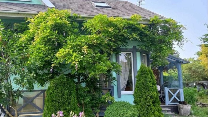 Двухэтажный дом состоит из 3 комнат, 2 санузлов.