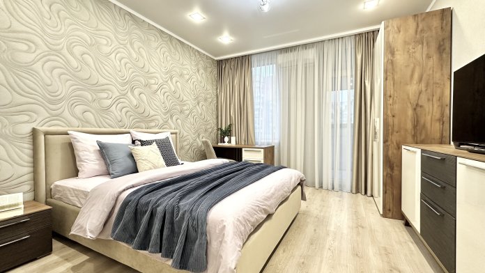 - Огромная кровать с ортопедическим матрасом в комнате.