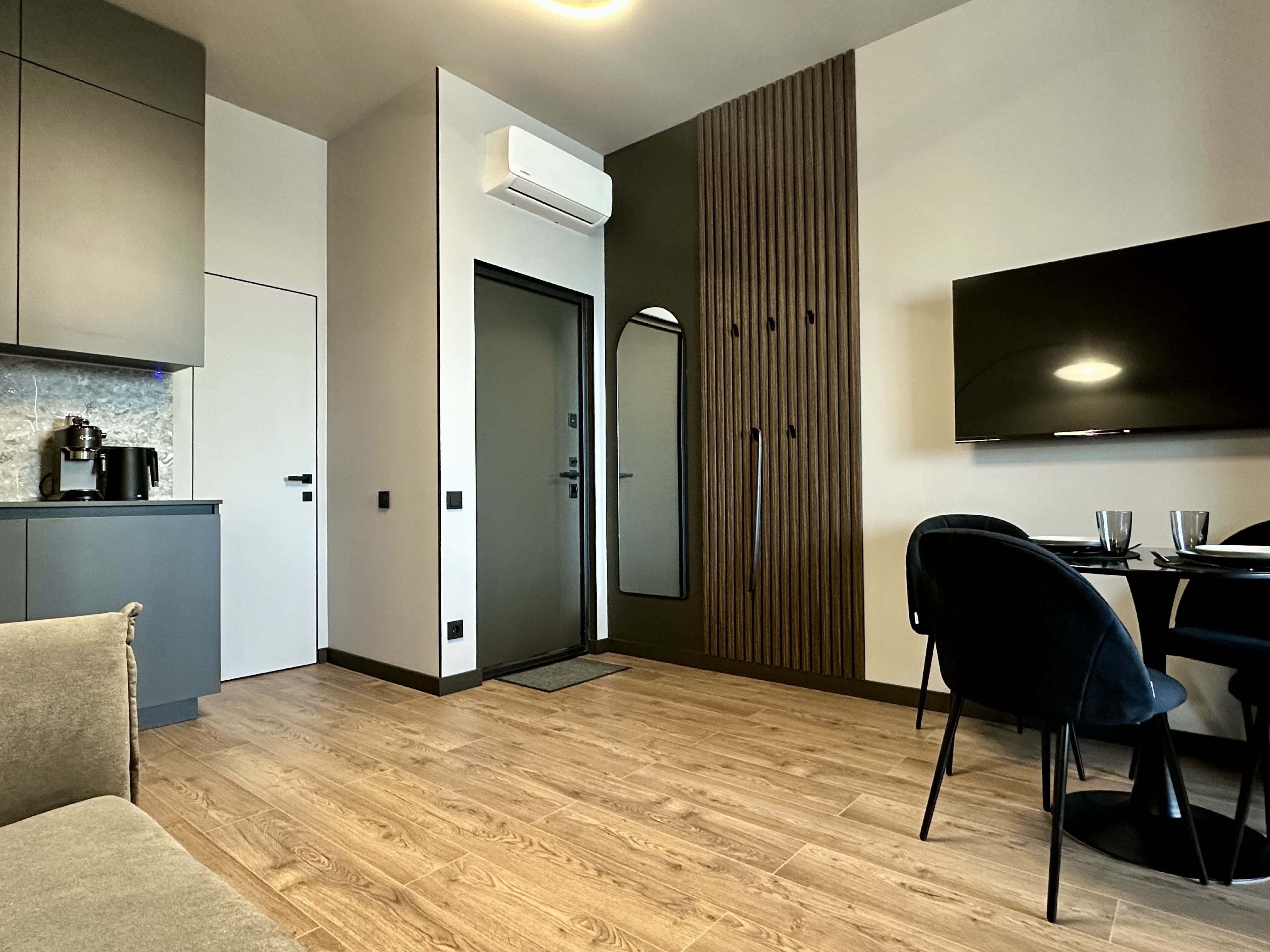 Светлые, уютные, просторные апартаменты с современным ремонтом с автономным отоплением. Апартаменты оборудованы современной техникой и системой кондиционирования для комфортного проживания.