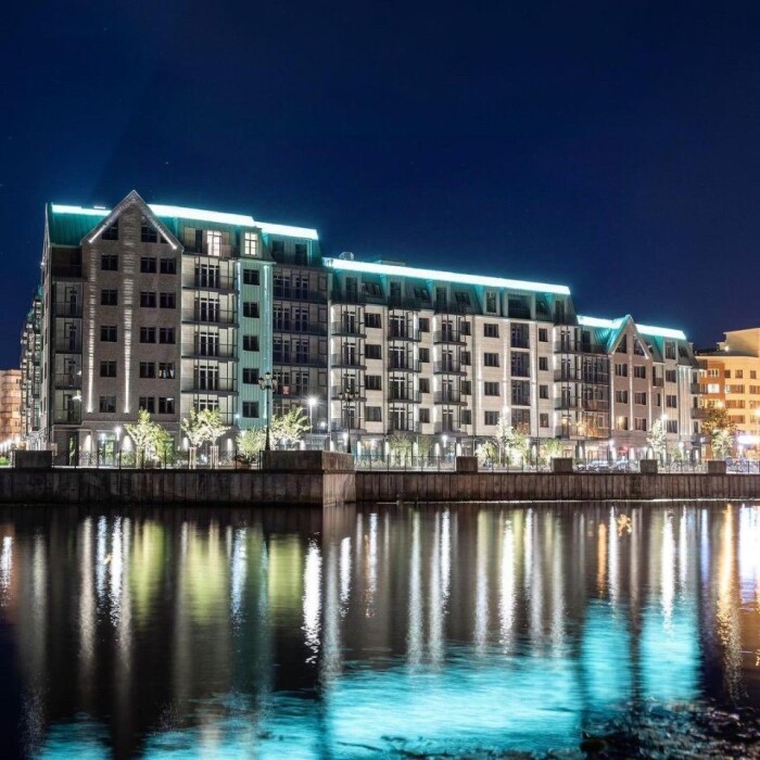 Предлагаем Вашему вниманию апартаменты в новом жилом комплексе премиум класса «Рыбная деревня». Уникальное месторасположение в самом сердце города и центре общекультурной жизни на острове (бывший остров Ломзе), на берегу Преголи, вдоль набережной. Во дворе на территории оборудована детская площадка. В жилом комплексе можно быть спокойным за безопасность, так как доступ проживающих в комплексе и их гостей, будет осуществляться с применением современных систем безопасного доступа. Это видеонаблюдение, селекторная связь и бесключевой доступ. Также рядом расположился парк «Южный», а до железнодорожного вокзала 5 минут езды. Через дорогу от комплекса супермаркет, а вдоль набережной, можно отдохнуть в приятных кафе и ресторанах с локальной или европейской кухней.