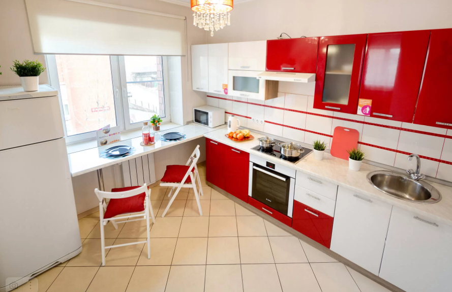 Полностью оборудованные кухни с посудой и столовыми приборами.