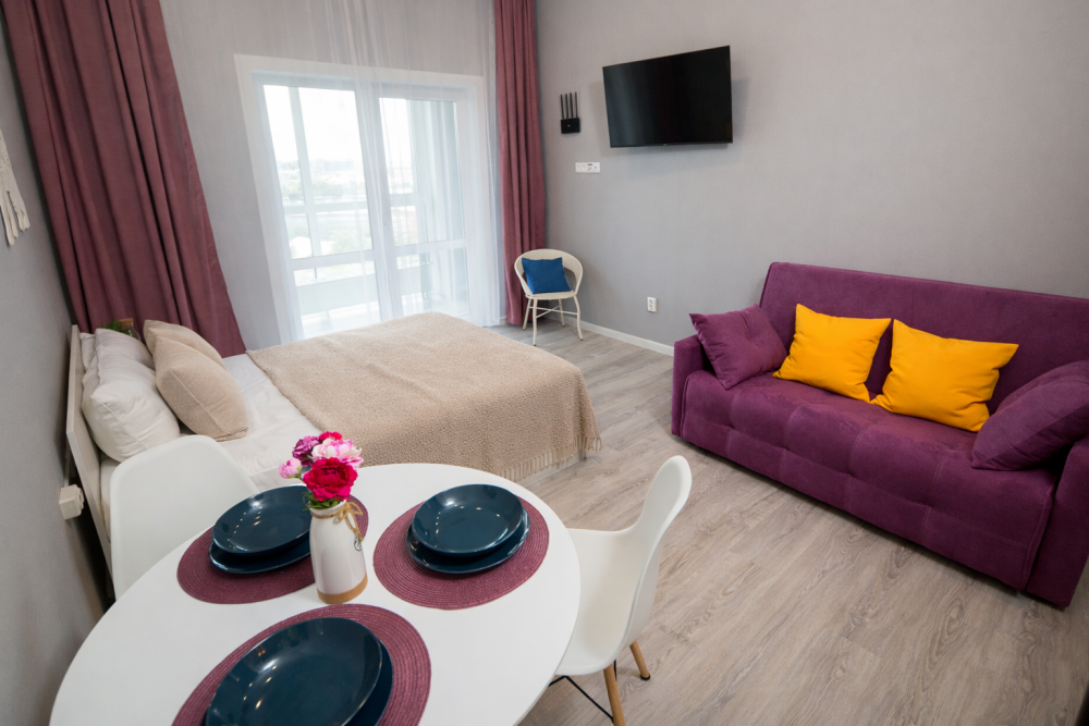 Никаких доплат. Количество постельного белья и полотенец рассчитано на каждого проживающего в квартире.