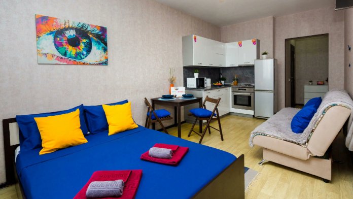 Уютная студия возле автовокзала, рассчитанная на размещение четырёх гостей. Находится на 5-м этаже, в доме есть лифт, что делает заселение удобным. Студия светлая и комфортная - отличный вариант как для путешественников, так и для деловых поездок.