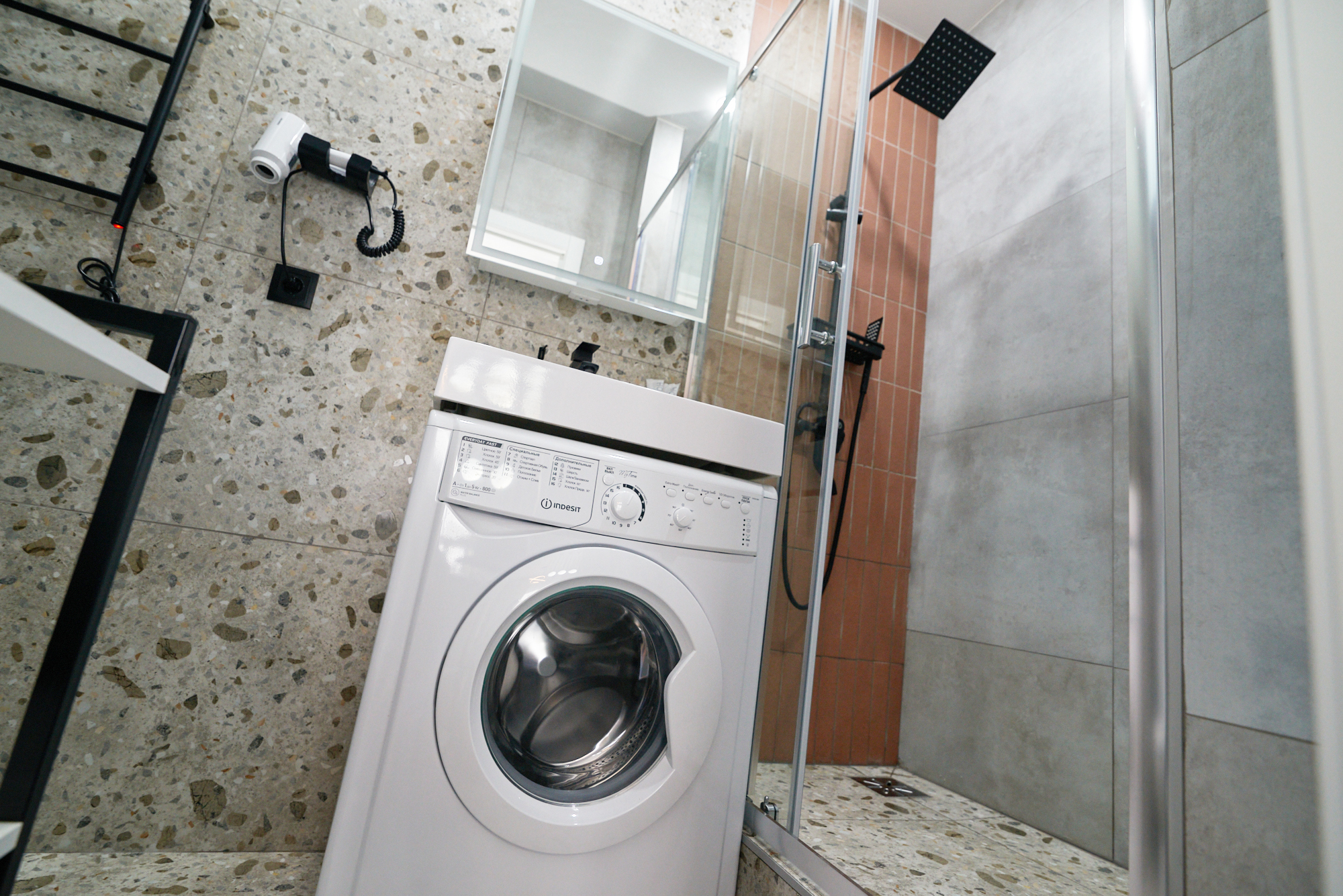 Просторный, совмещенный санузел, душевая (стиральная машина, фен, полотенца).