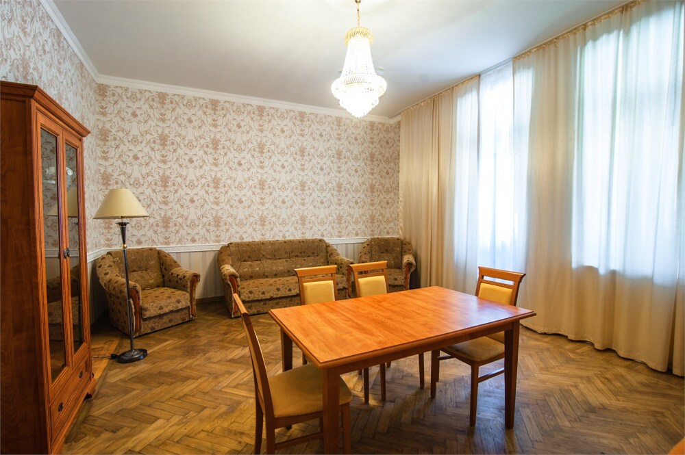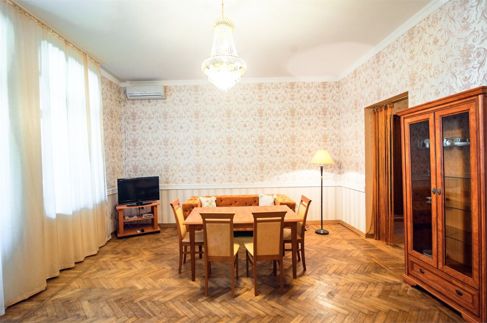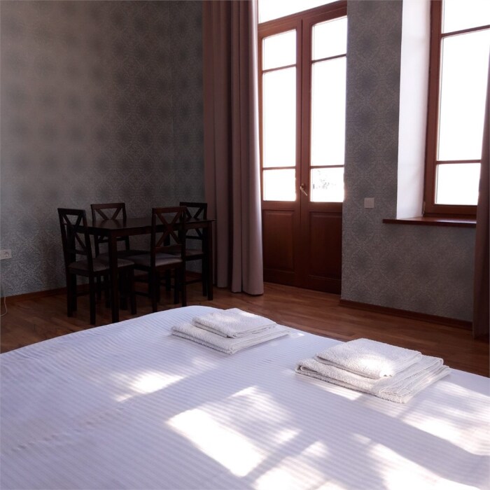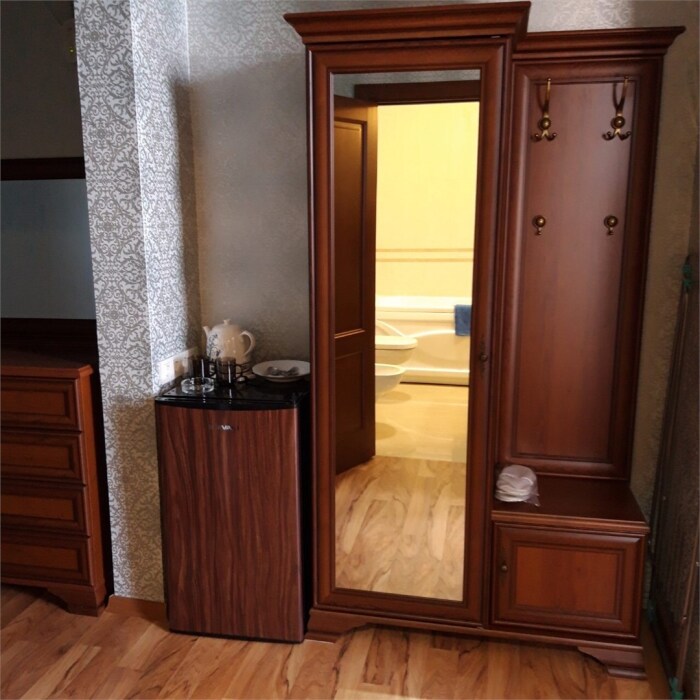 В номере: санузел, ванна, ТВ, холодильник, кондиционер, двуспальная кровать, набор мебели, чайник, сейф, лоджия 17 кв.м. мебель из красного дерева.