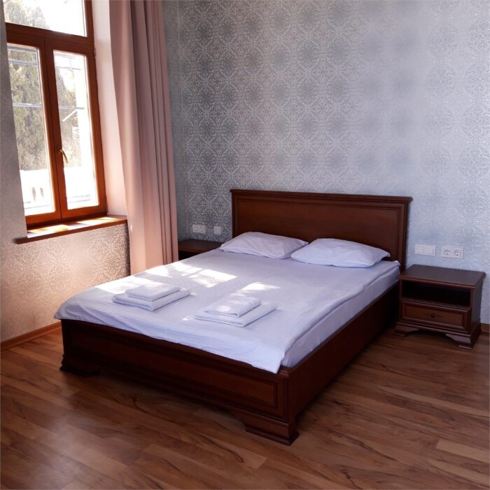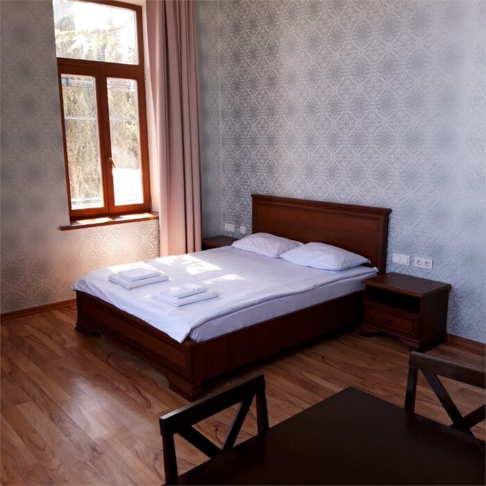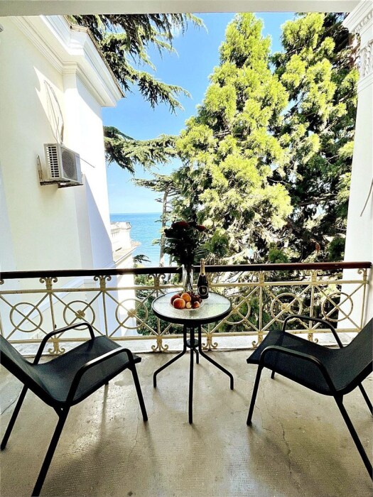 Однокомнатный уютный номер, расположенный в главном корпусе в 20 метрах от моря. Номера, расположенные на 1 и 2 этажах имеют балкон (11 кв. м.) или небольшую террасу с видом на парк или горы.