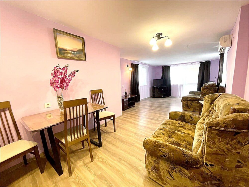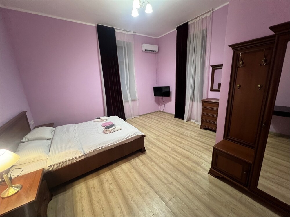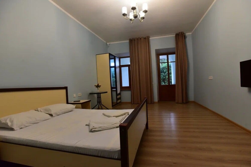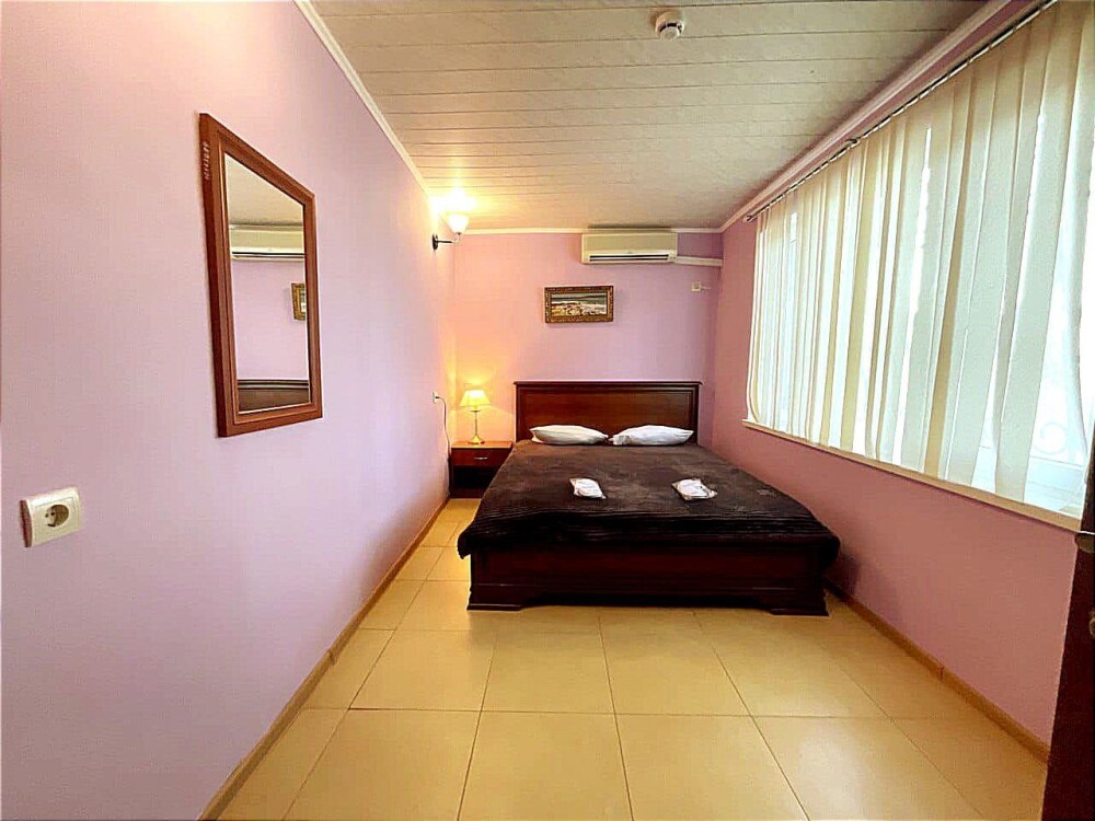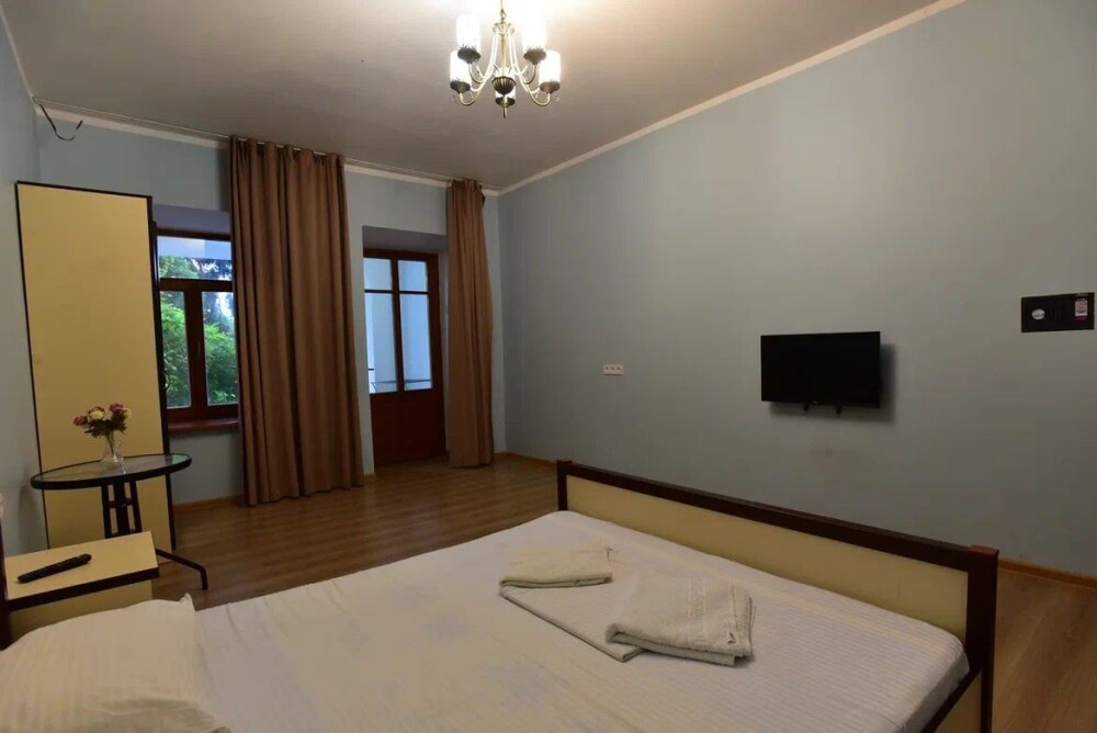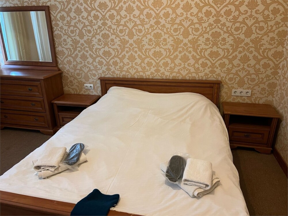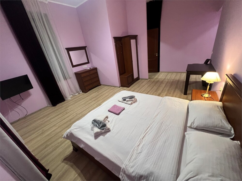 В номере: санузел (унитаз, биде, ванна,) ТВ, холодильник, кондиционер, двуспальная кровать, чайник, набор мебели, лоджия 17 кв.м.