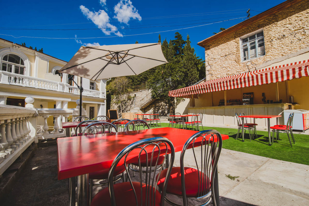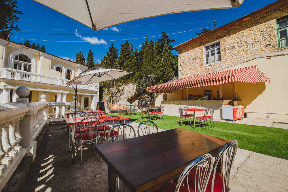 Кафе находится на берегу моря, на территории комплекса. Столики размещены на террасе, на открытой площадке под зонтиками. Отсюда открывается панорама на морские просторы, что делает трапезу еще более приятной. Посещать кафе удобно тем, кто остановился в отеле. Отдыхающих ждет простая, уютная атмосфера и вкусная, сытная еда по приемлемой цене. В меню входят комплексные обеды и отдельные блюда на заказ. На выбор предоставляются первые, вторые блюда, каши, салаты– все, что нужно для здорового питания, блюда, приготовленные на углях, жару, детское меню.