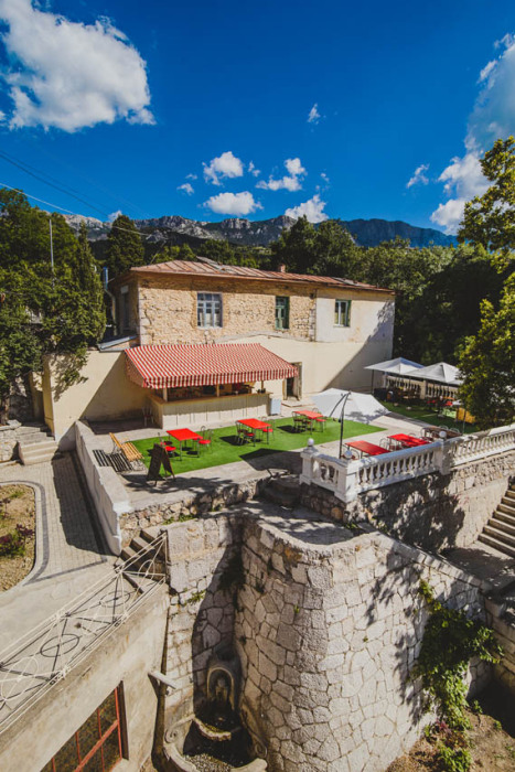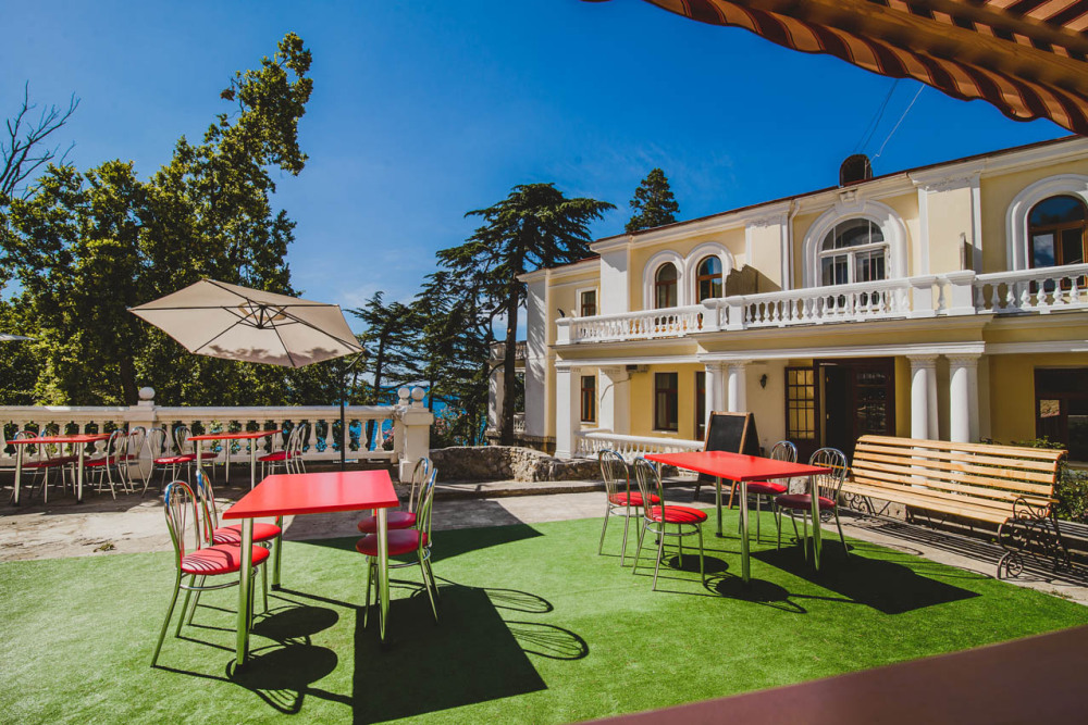 Гостиничный комплекс состоит из главного корпуса - памятника архитектуры начала XX века, где есть номера с большими балконами и красивыми видами, а также двух аэрариев (климатопавильонов) над пляжем, где бюджетные номера с панорамным видом на море, гостевого дома на берегу моря и двух кафе: «Розмарин» и вегетарианского кафе. Мы предлагаем доступные цены и каждый гость может выбрать оптимальный для себя номер по стоимости, фото и характеристикам.