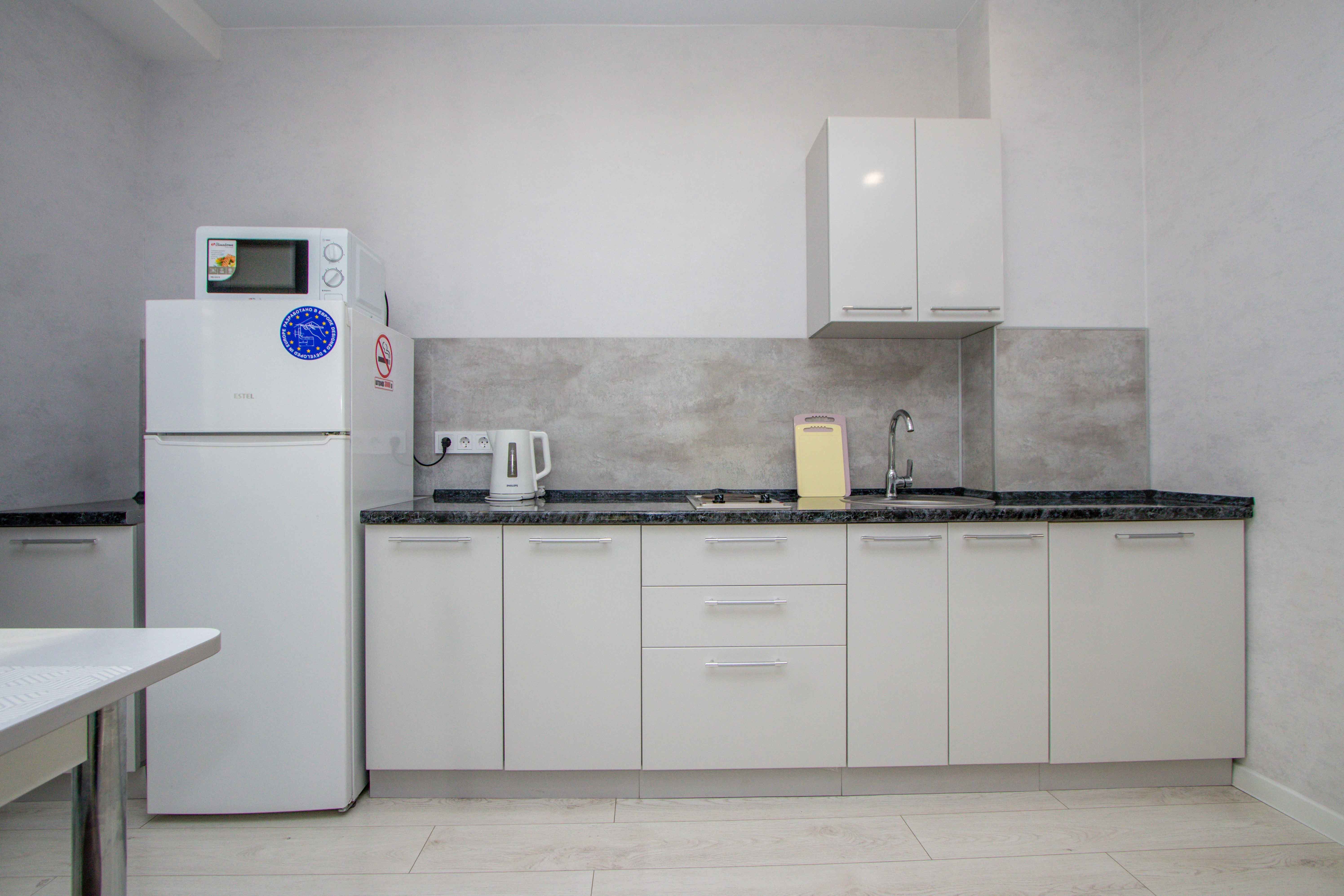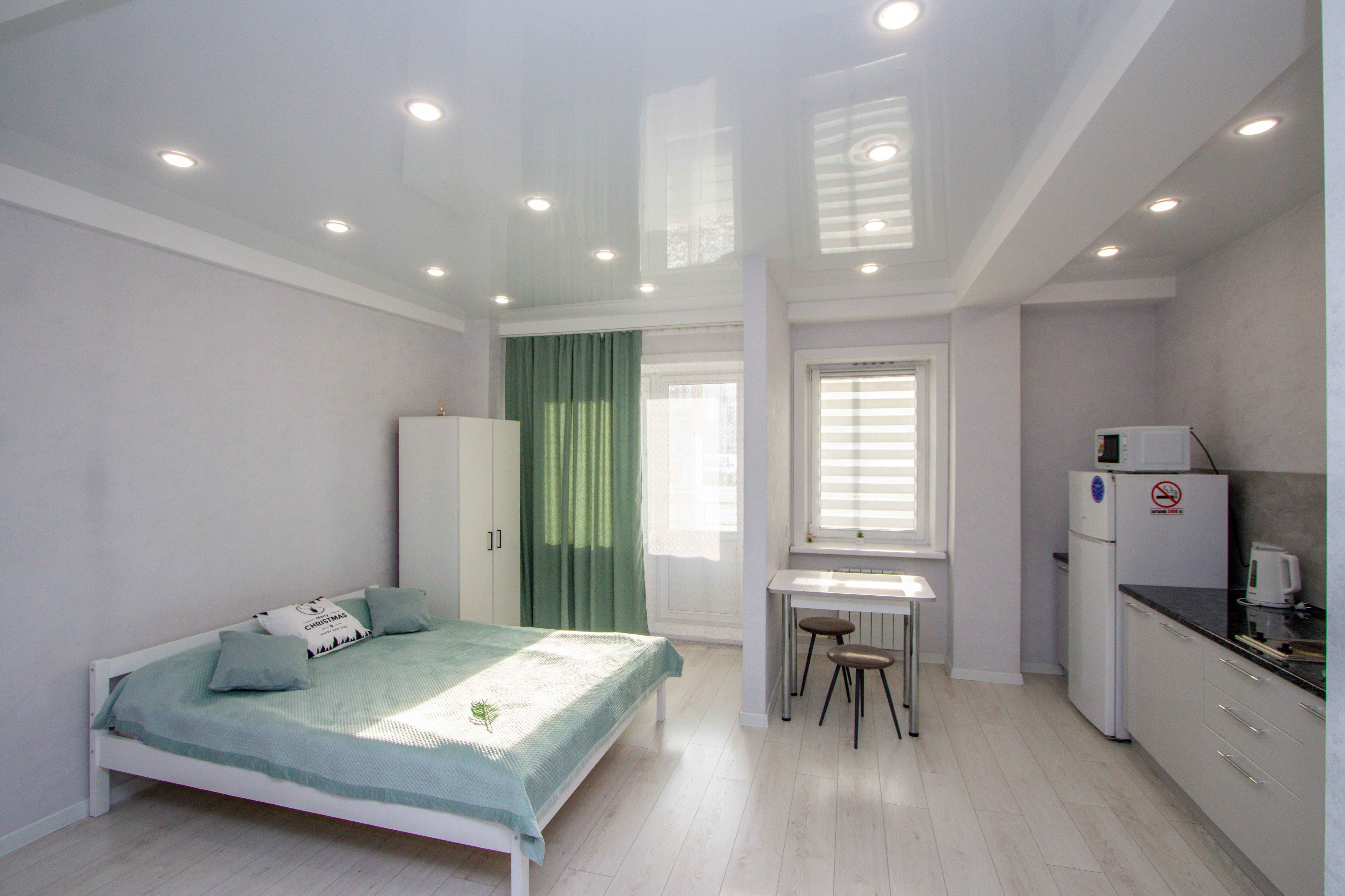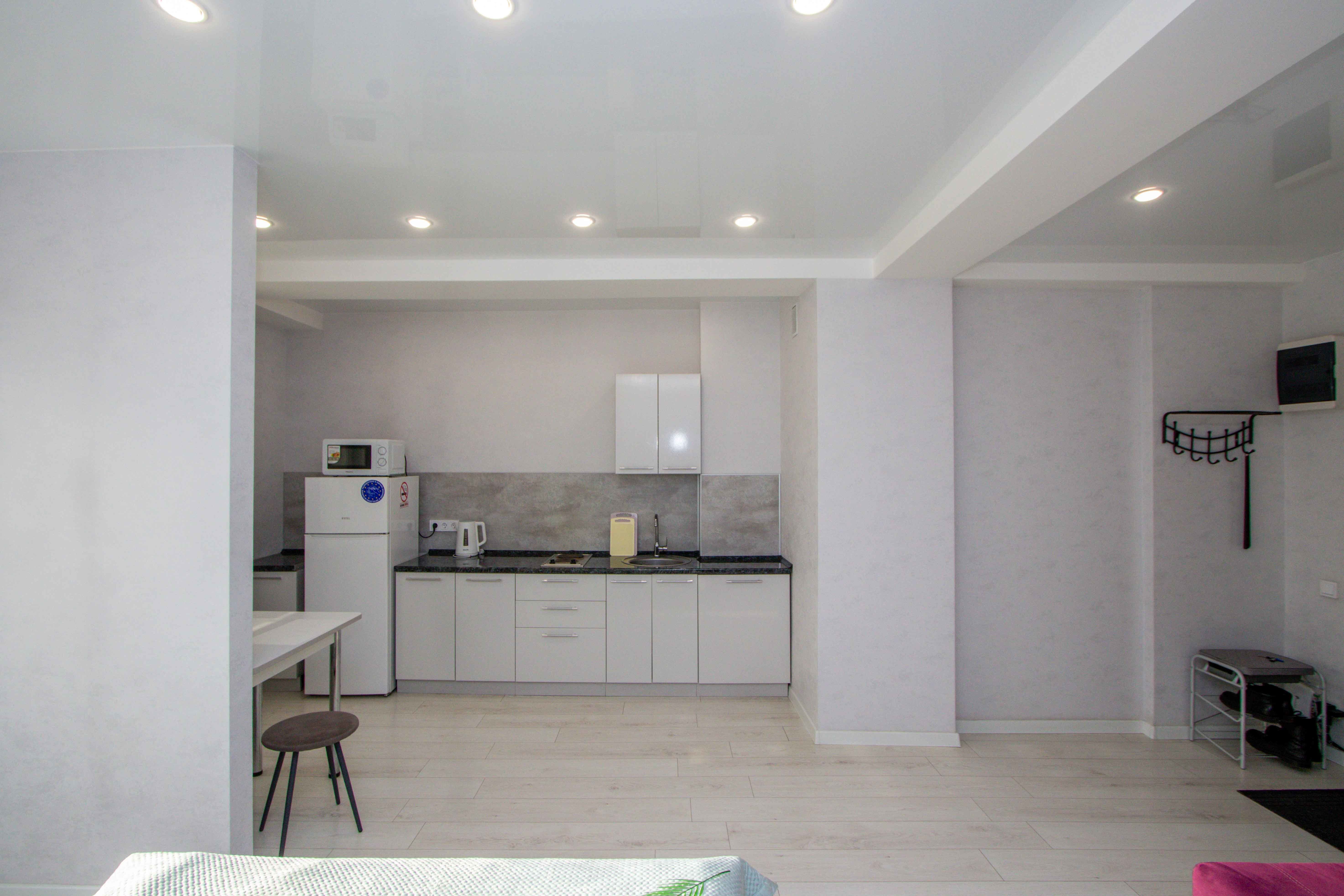 Выполнен качественный дизайнерский ремонт в светлых тонах, натяжные потолки, ламинат, кафель, новая бытовая техника, мебель. Светлая ванная под мрамор. Квартира с двуспальной кроватью, и двуспальным диваном. Диван с легкостью раскладывается, создавая два места для сна. Для проведения досуга предусмотрен ЖК-телевизор с Wi-Fi, кабельным телевидением.