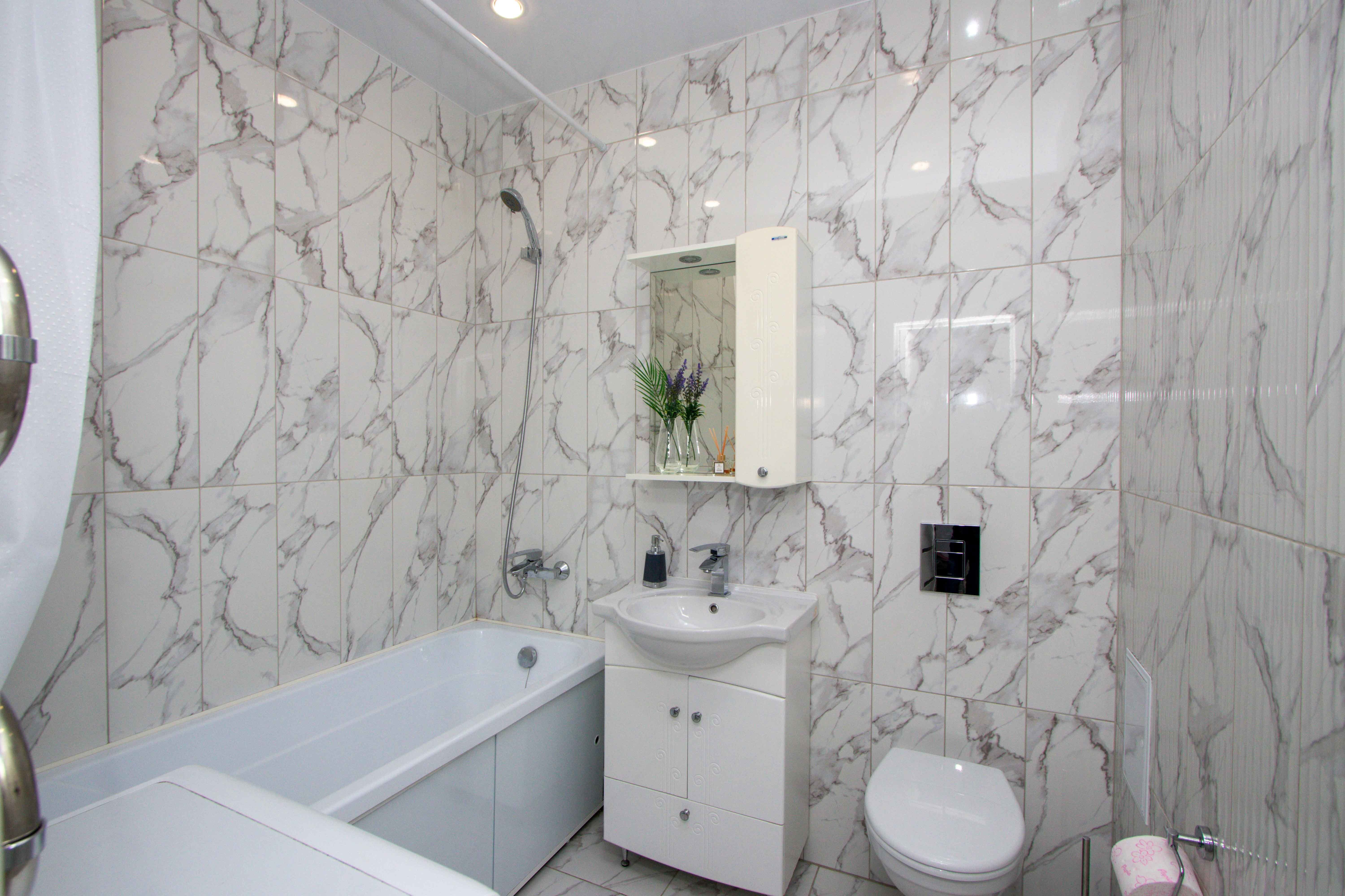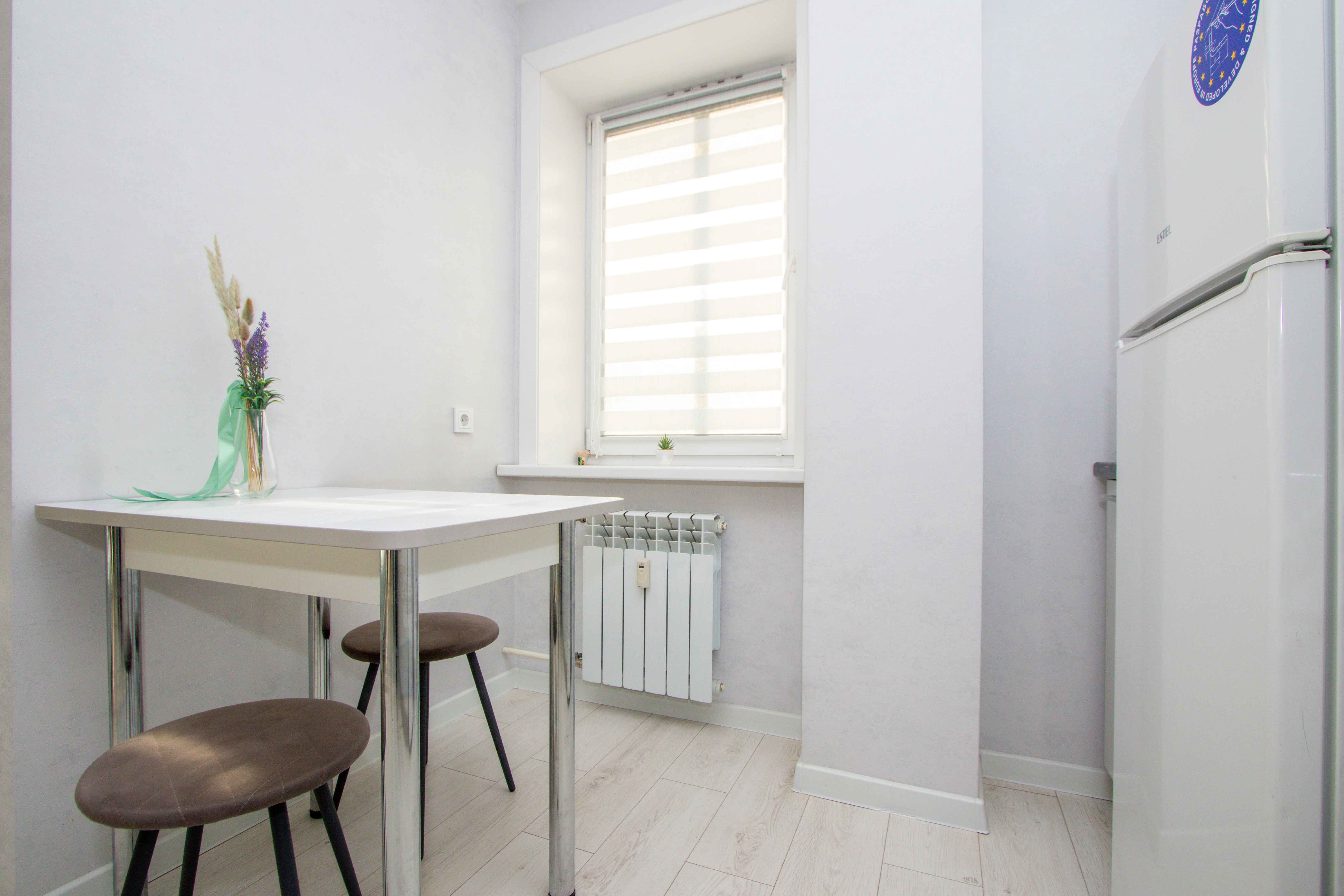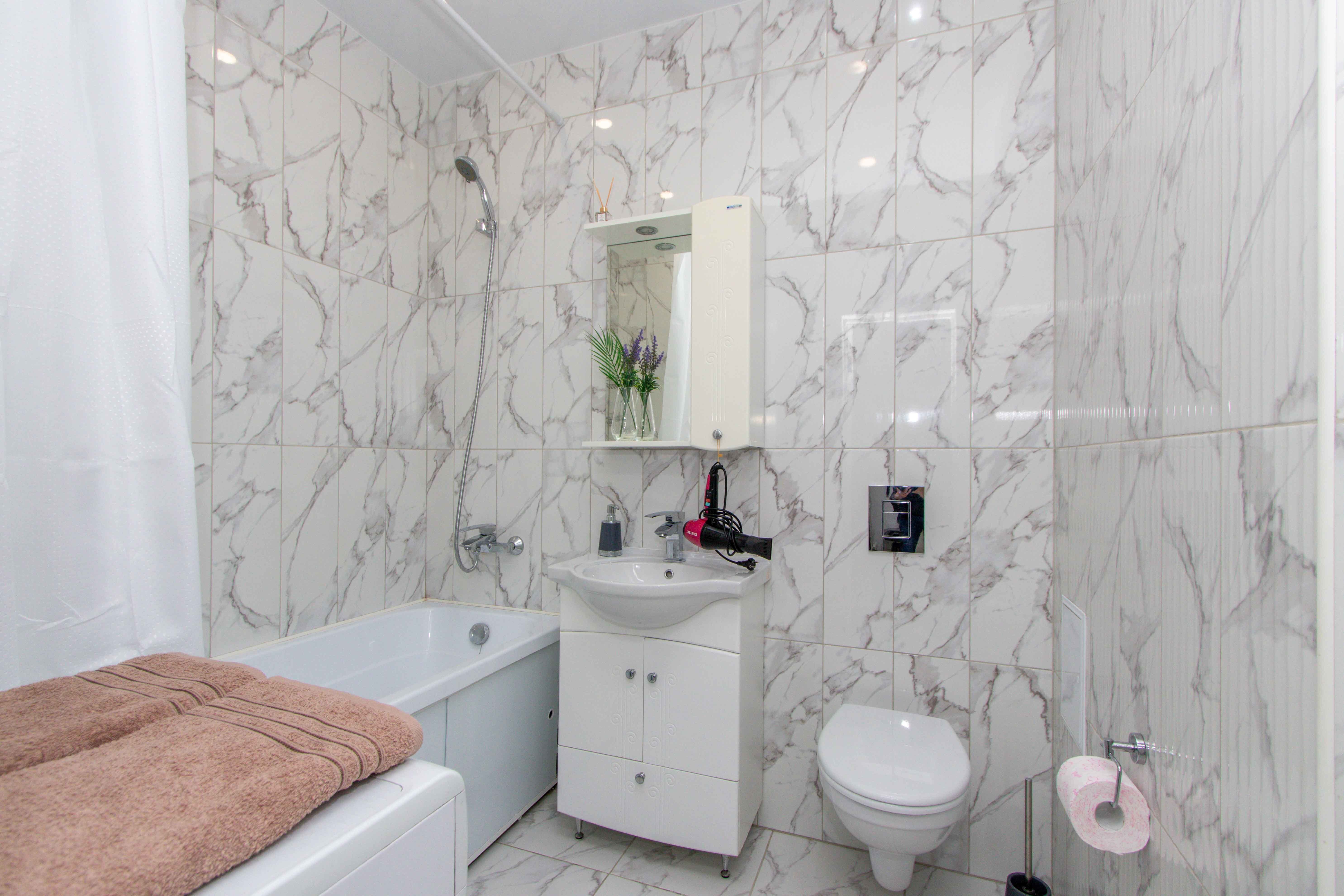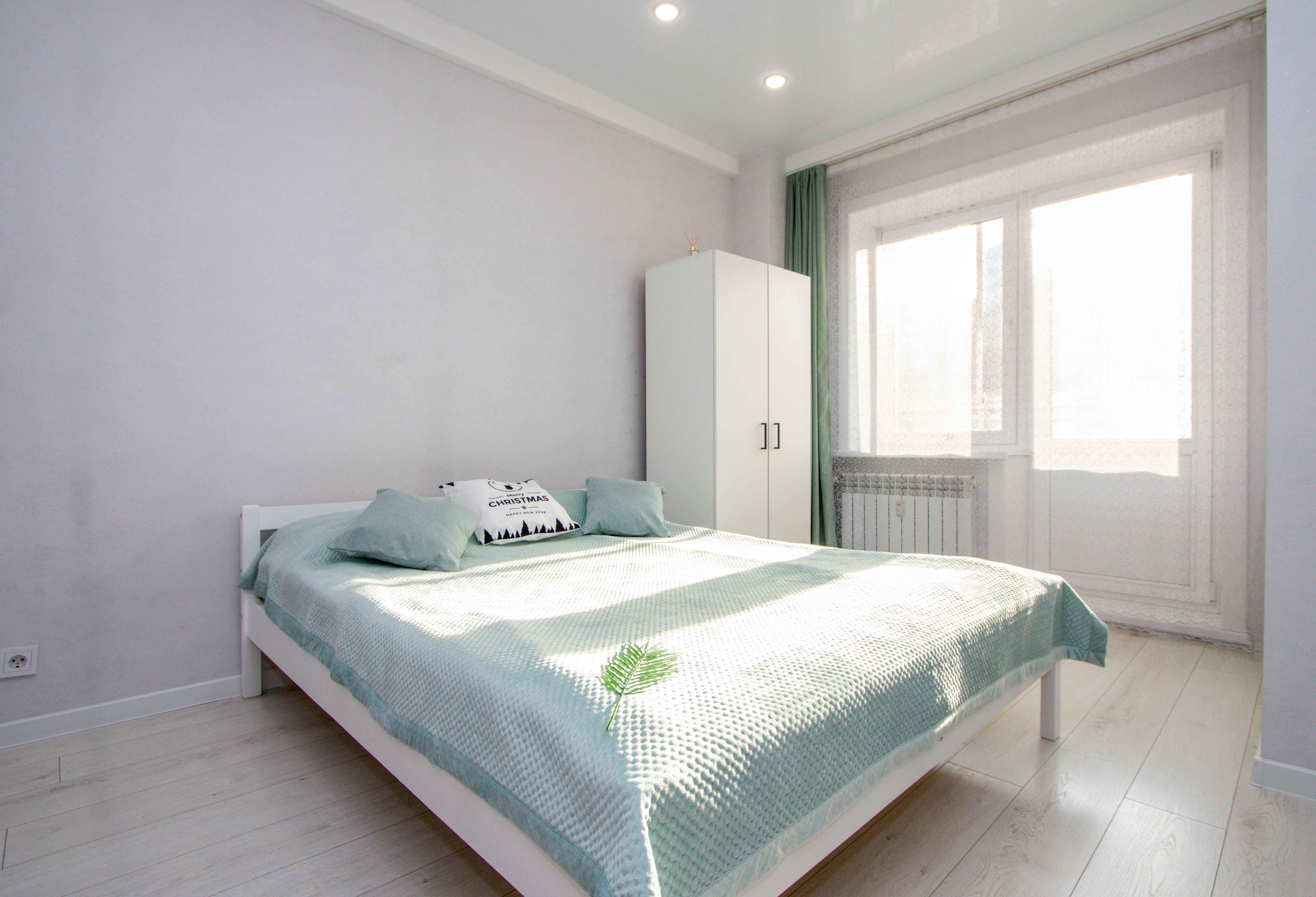 Выполнен качественный дизайнерский ремонт в светлых тонах, натяжные потолки, ламинат, кафель, новая бытовая техника, мебель. Светлая ванная под мрамор. Квартира с двуспальной кроватью, и двуспальным диваном. Диван с легкостью раскладывается, создавая два места для сна. Для проведения досуга предусмотрен ЖК-телевизор с Wi-Fi, кабельным телевидением.