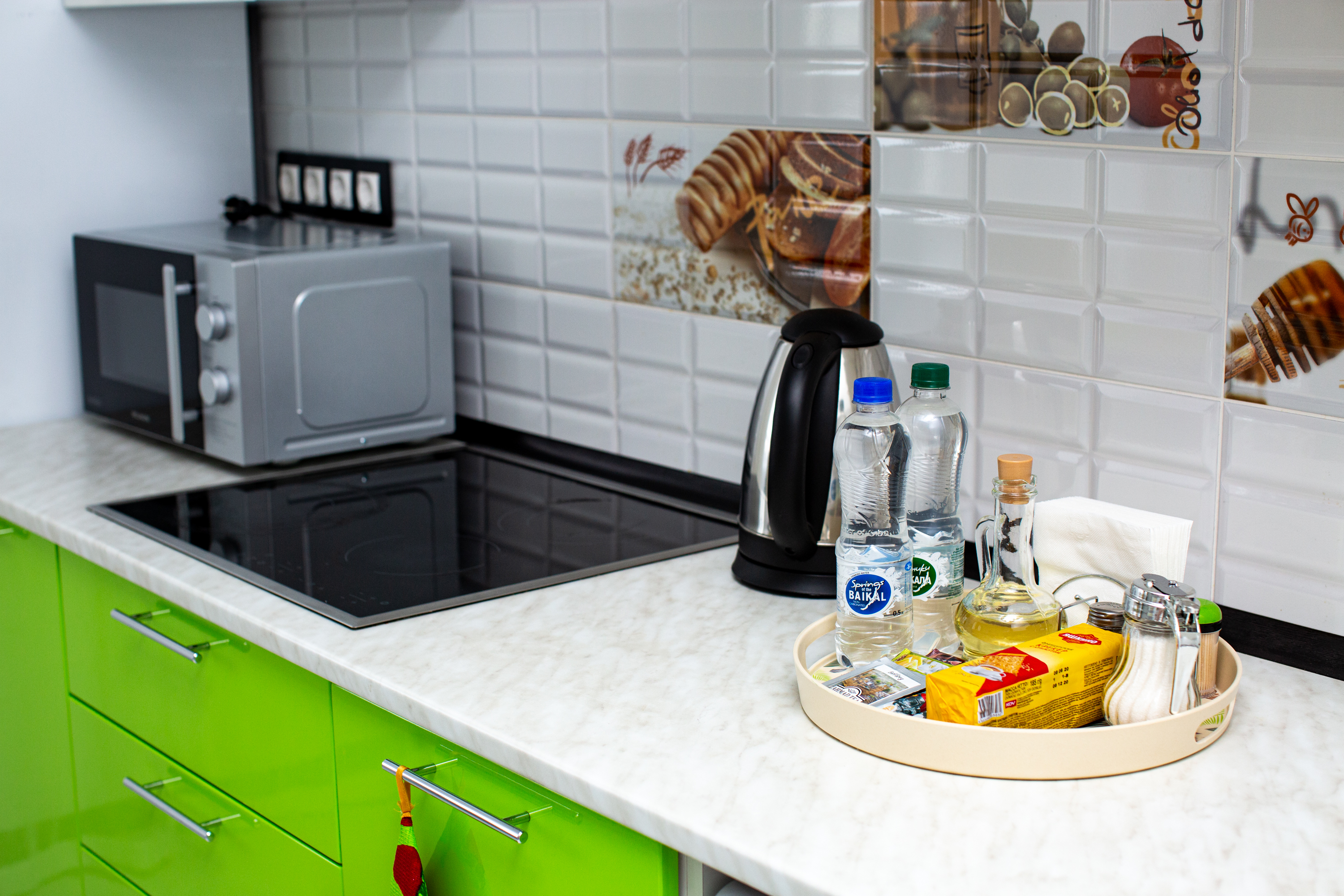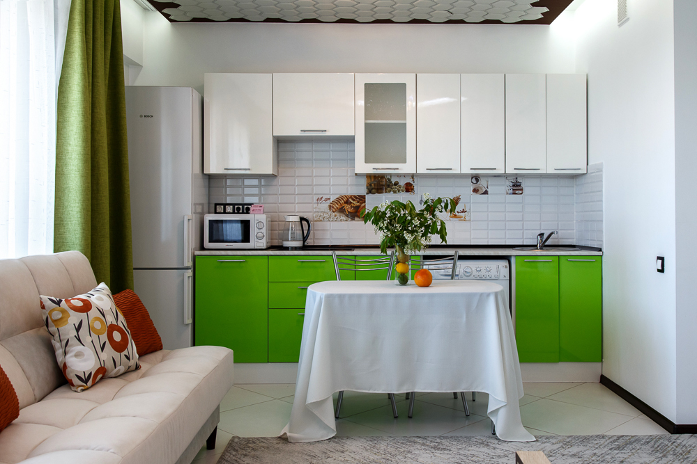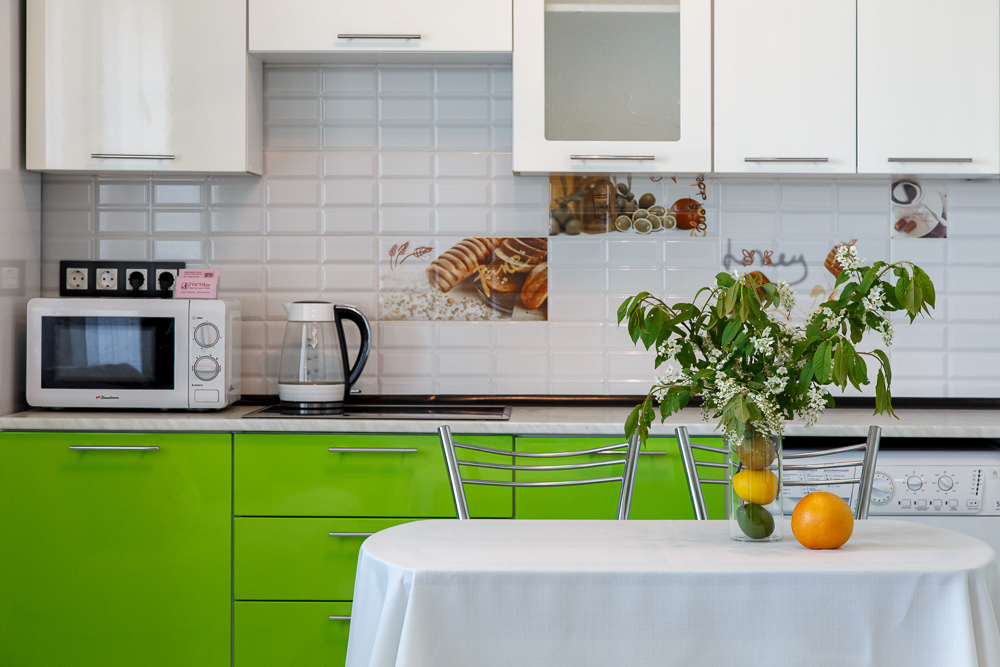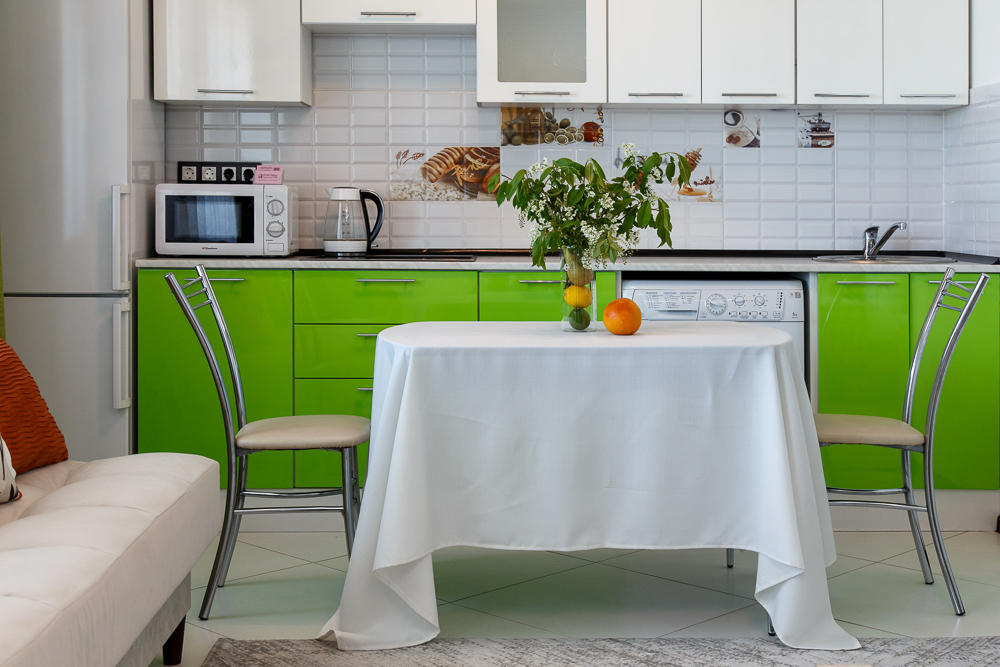 - Холодильник, плита, микроволновая печь, чайник, стиральная машина.