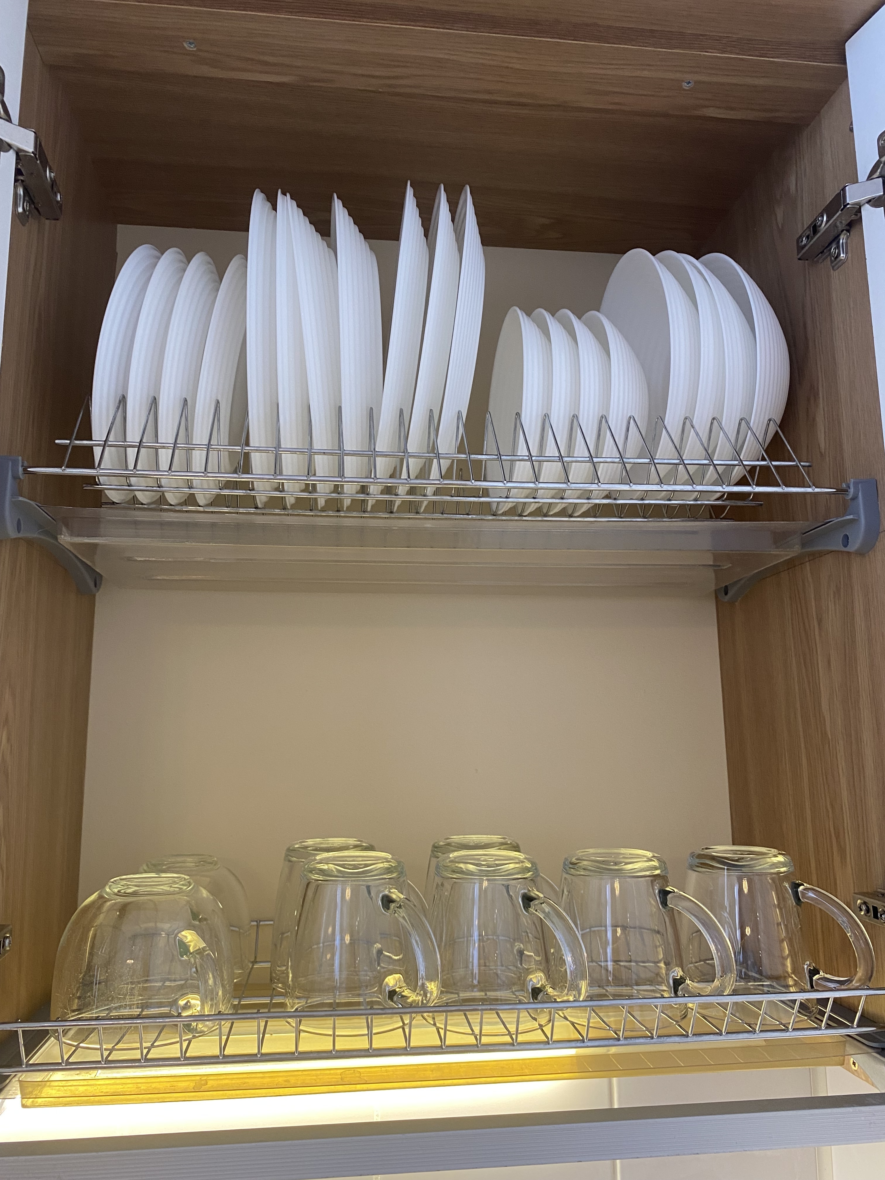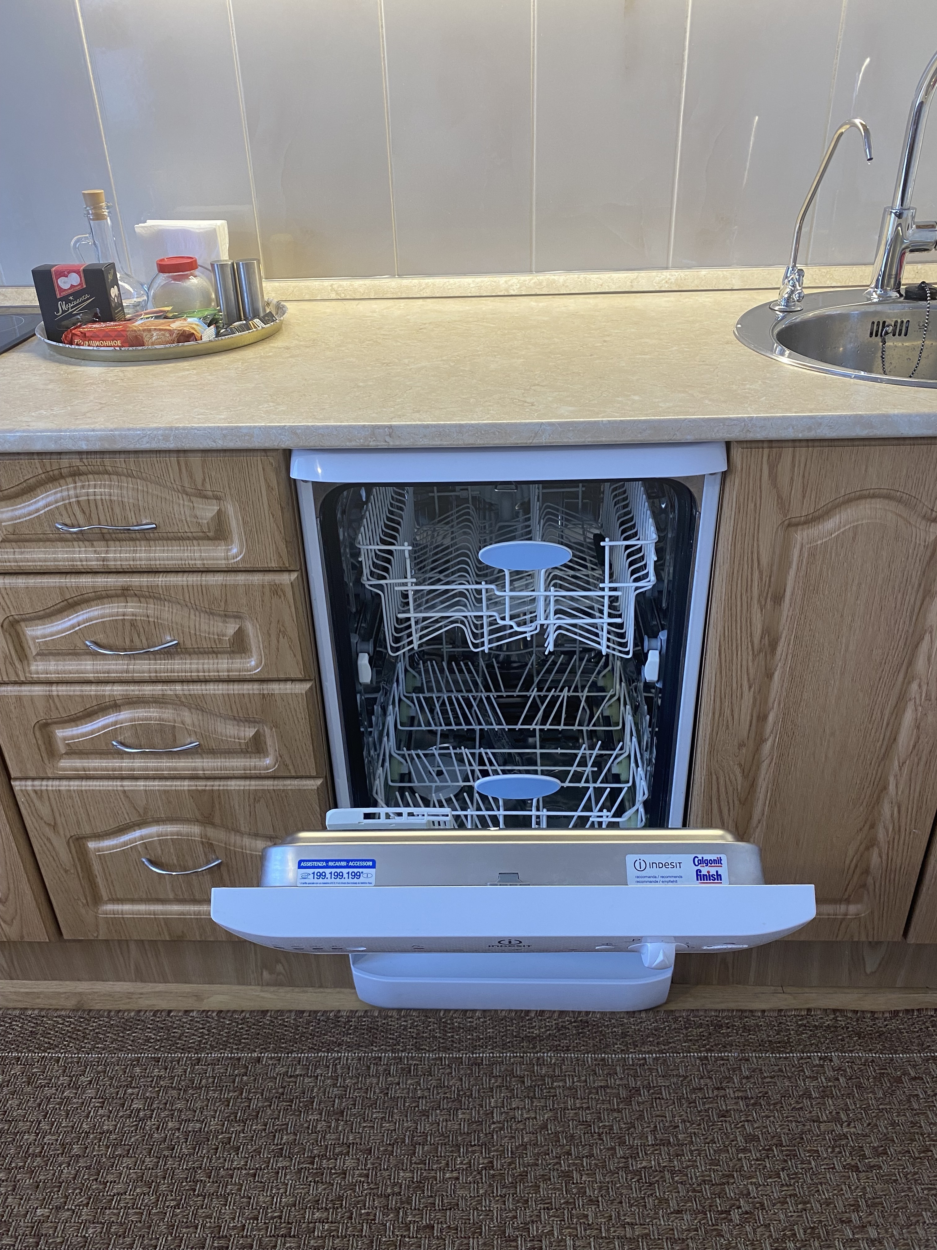 - Холодильник, плита, посудомоечная машина, микроволновая печь, чайник, стиральная машина. Есть водонагреватель и дополнительные источники тепла (безопасные конвекторы) на межсезонье.