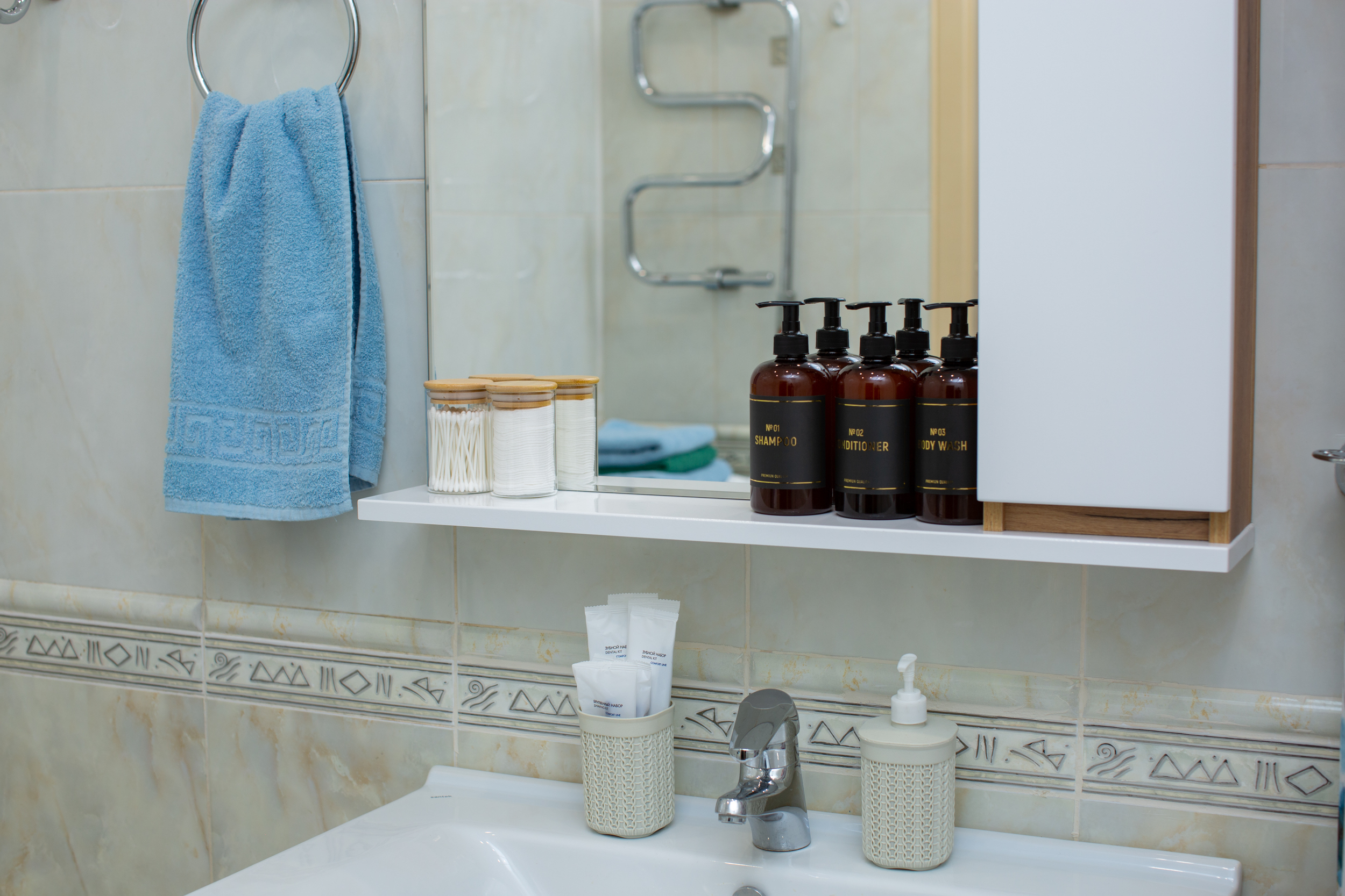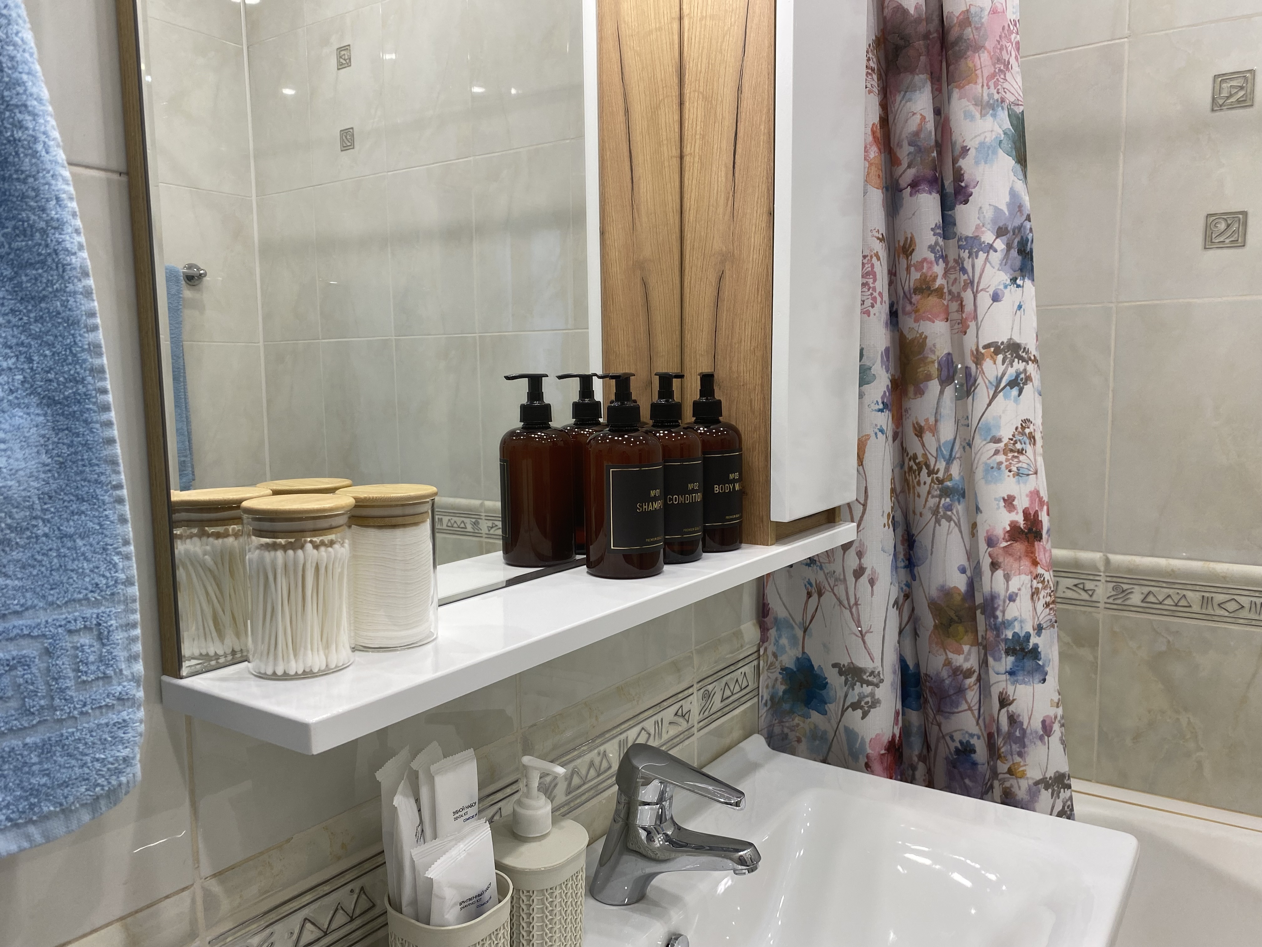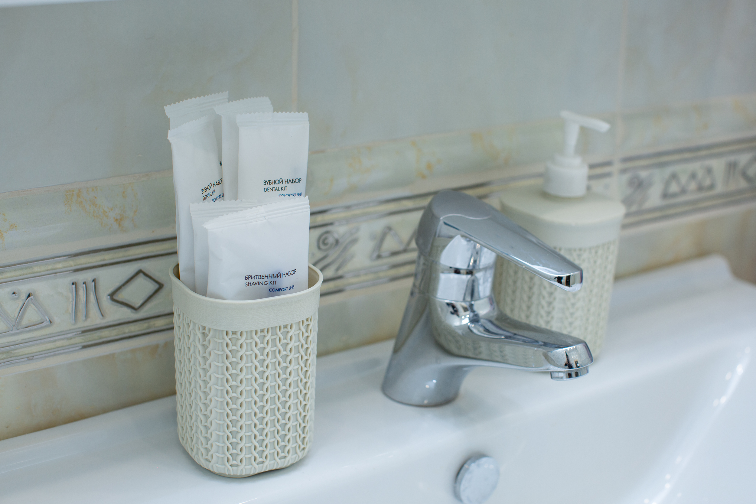 - Индивидуальные средства гигиены: зубные наборы, станок, шампунь, кондиционер для волос, гель д/душа, мыло, тапочки, пушистые полотенца.