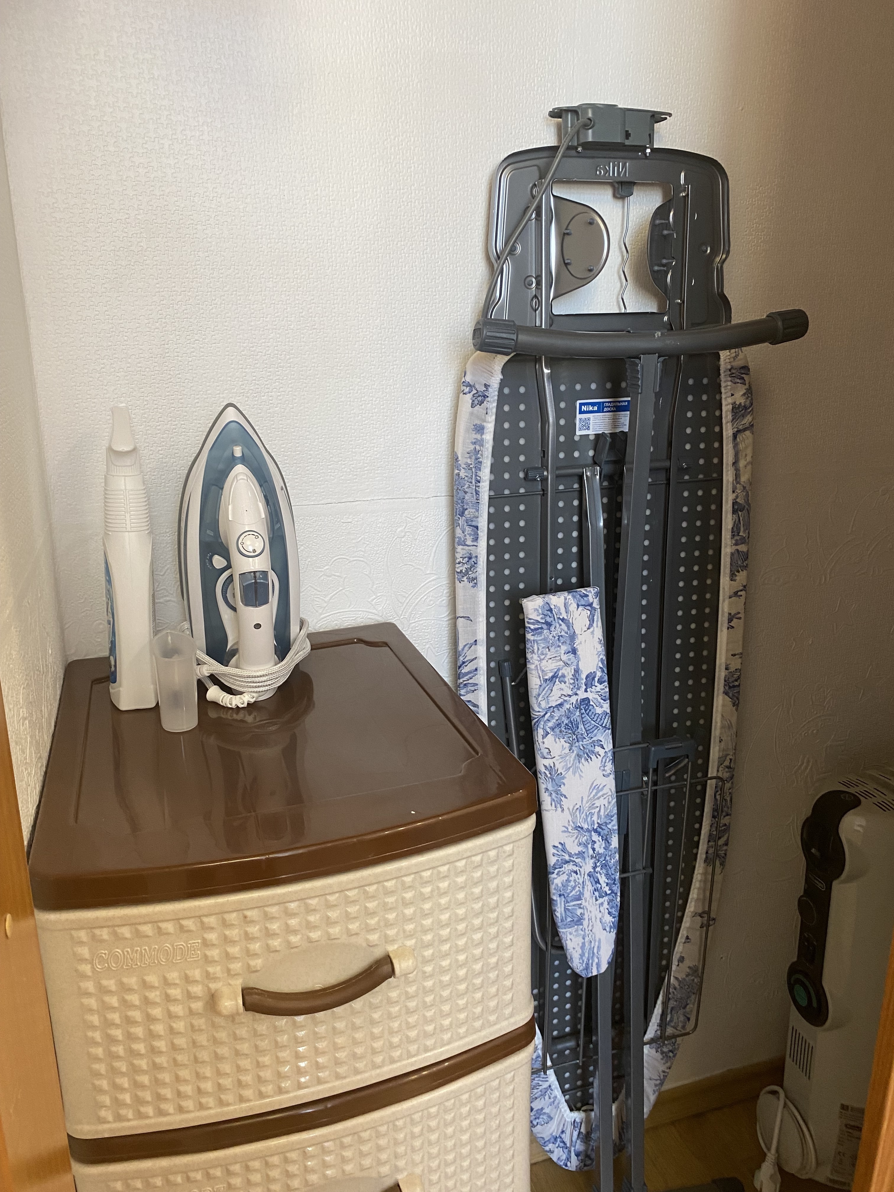 - Фен, утюг и гладильная доска, ролик для одежды, губка для обуви.