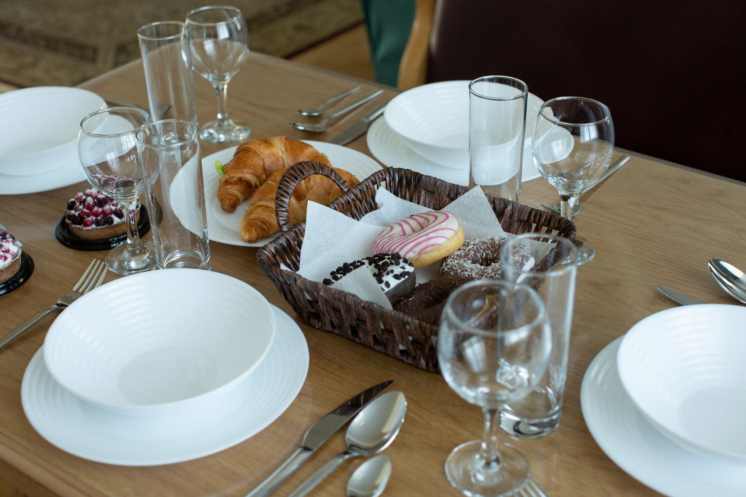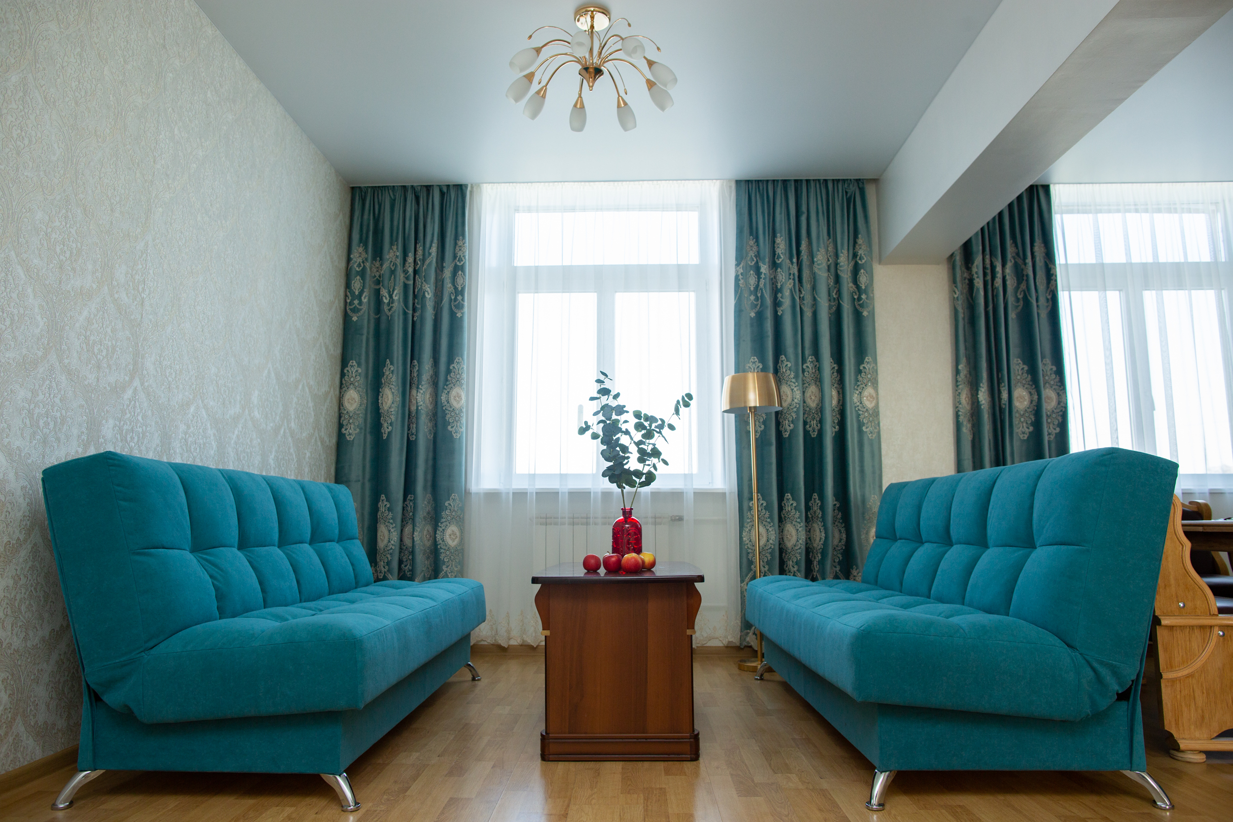 - Для комфортного сна: две односпальные и двуспальная (или две двуспальные по запросу) кровати и два двуспальных дивана с качественными постельными принадлежностями и бельем.