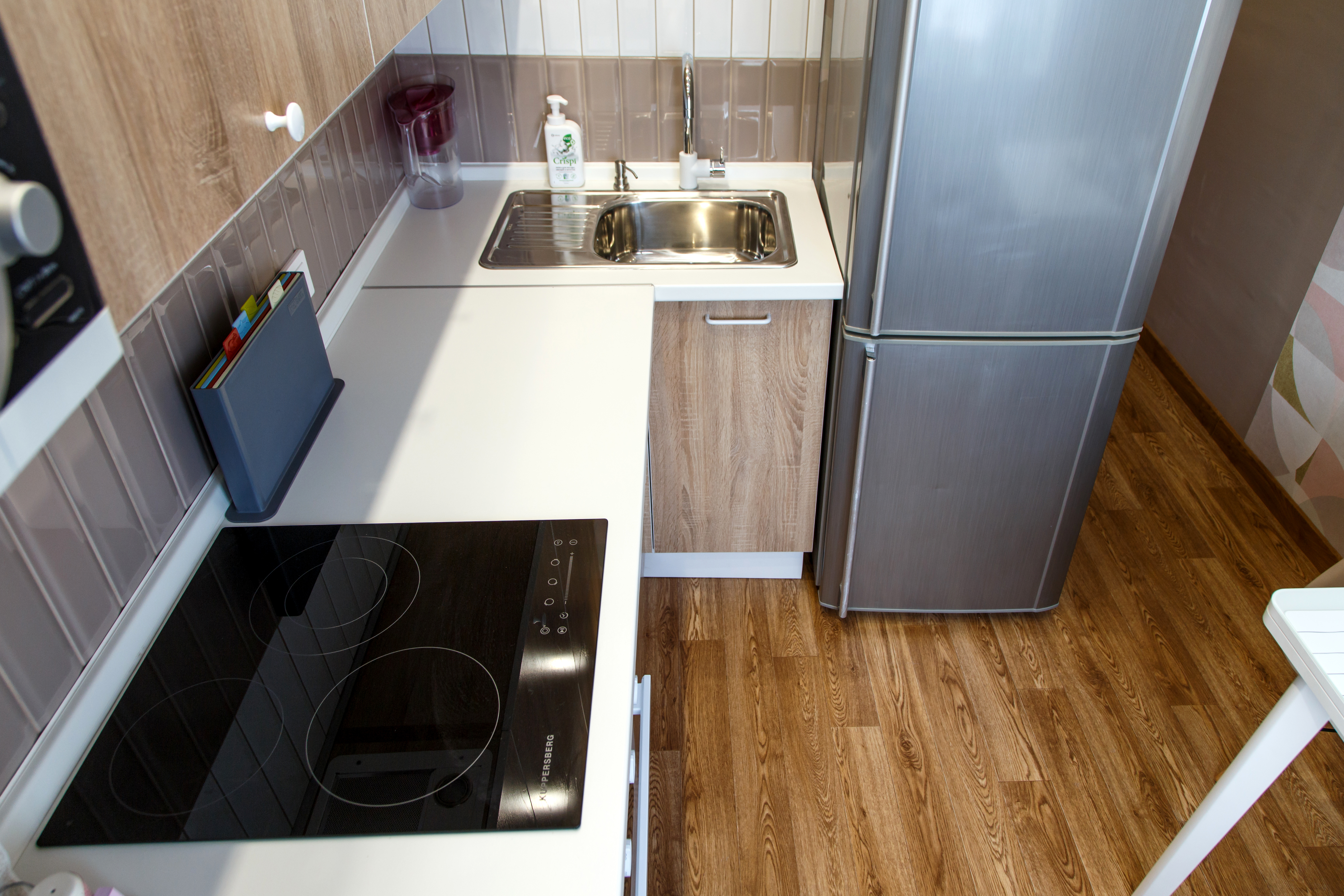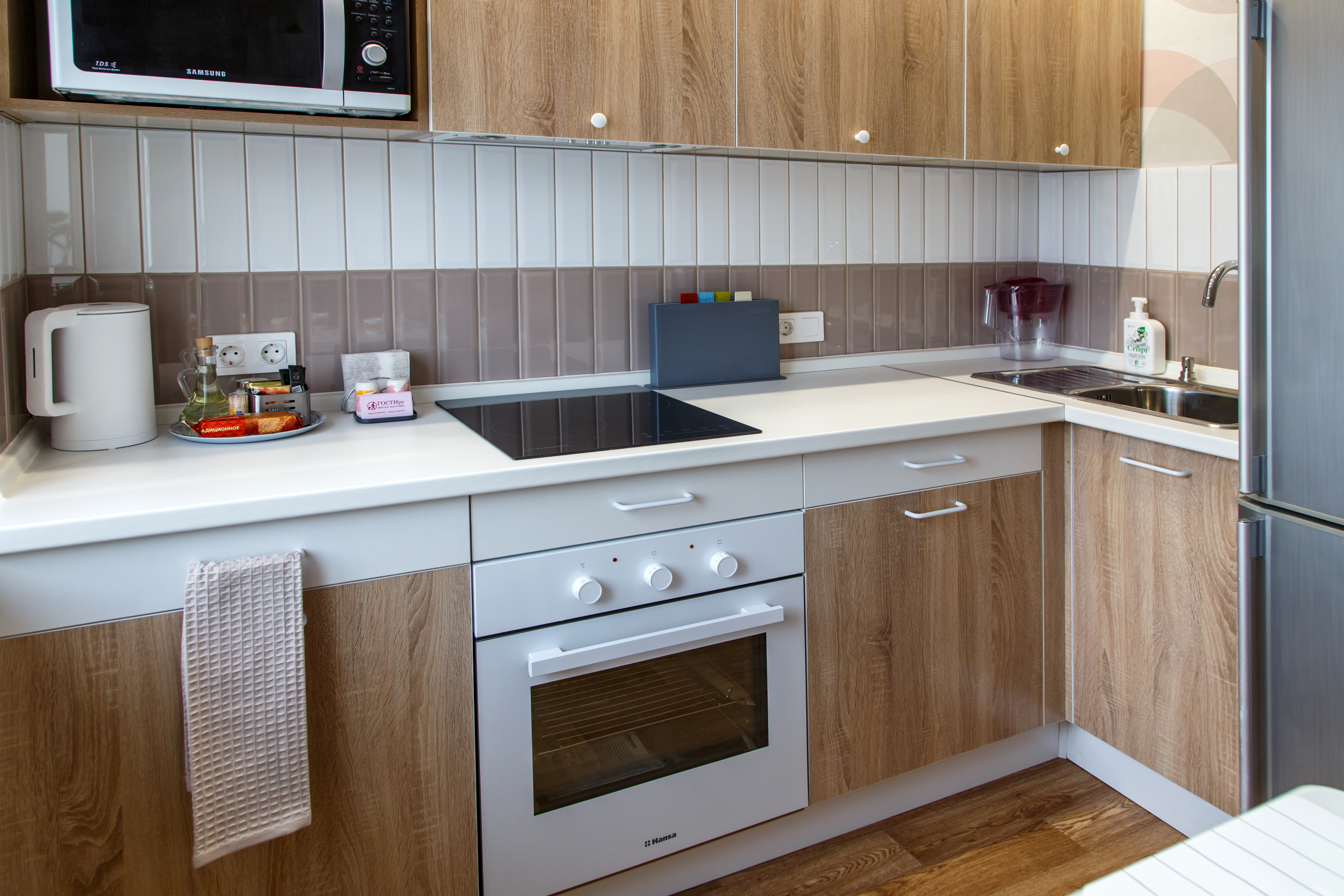 - Холодильник, плита с духовкой, микроволновая печь, чайник, стиральная машина, обеспечат Ваш комфорт. Есть водонагреватель.