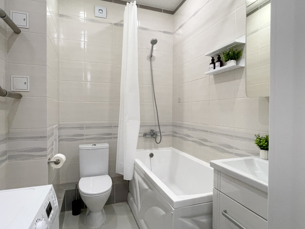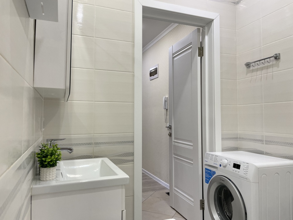 - Современные удобства: Wi-Fi, Smart TV, кондиционер, водонагреватель, утюг, фен и стиральная машина.