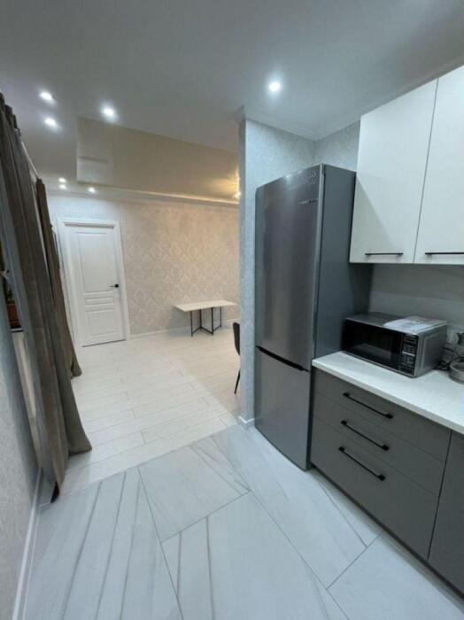 Квартира укомплектована необходимой мебелью и бытовой техникой. Большая 2 спальная кровать (160×200), двуспальный диван. Плазменный Смарт-телевизор. Встроенная кухня, двухкамерный холодильник nо frоst, чайник, доска гладильная, утюг, сушильная складная доска.