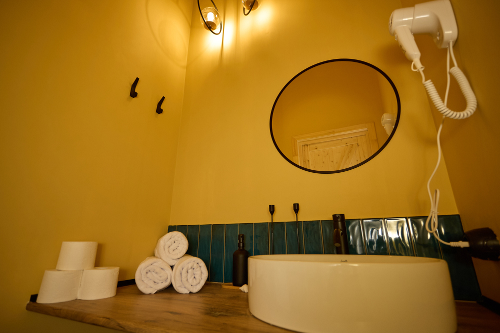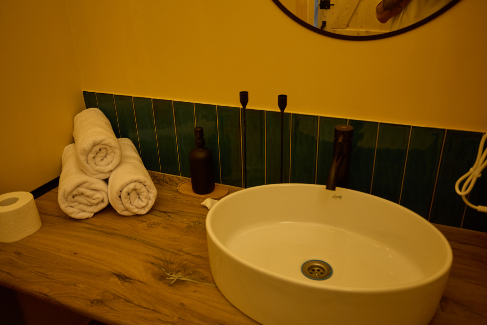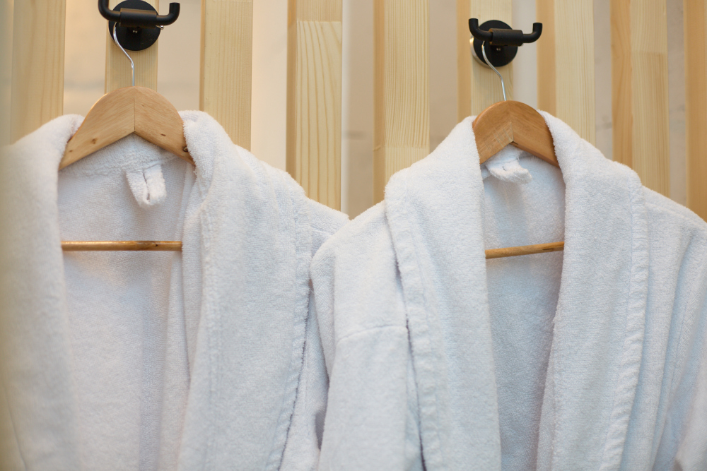 — махровые халаты, мягкие тапки Crocs, мягчайшие полотенца, постельное белье из отбеленного сатина дадут телу тактильные приятные ощущения;