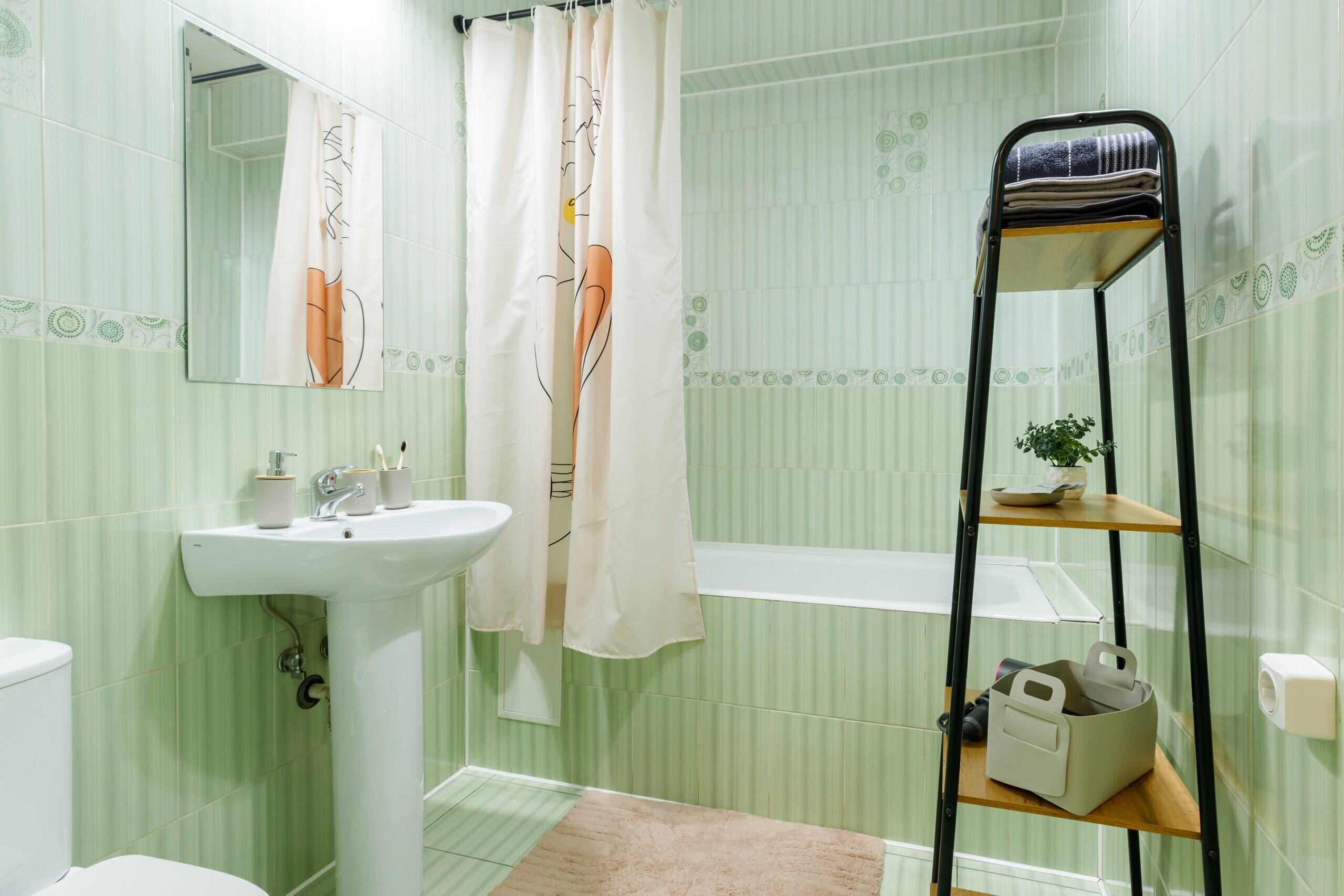 Просторные ванные комнаты с феном, свежими полотенцами и косметическими принадлежностями.