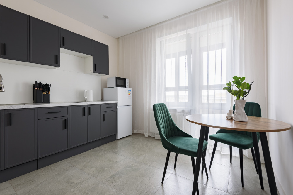 - Все необходимые кухонные принадлежности для приготовления еды (новая посуда, электрический чайник, плита, холодильник, микроволновая печь);