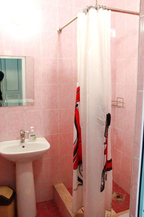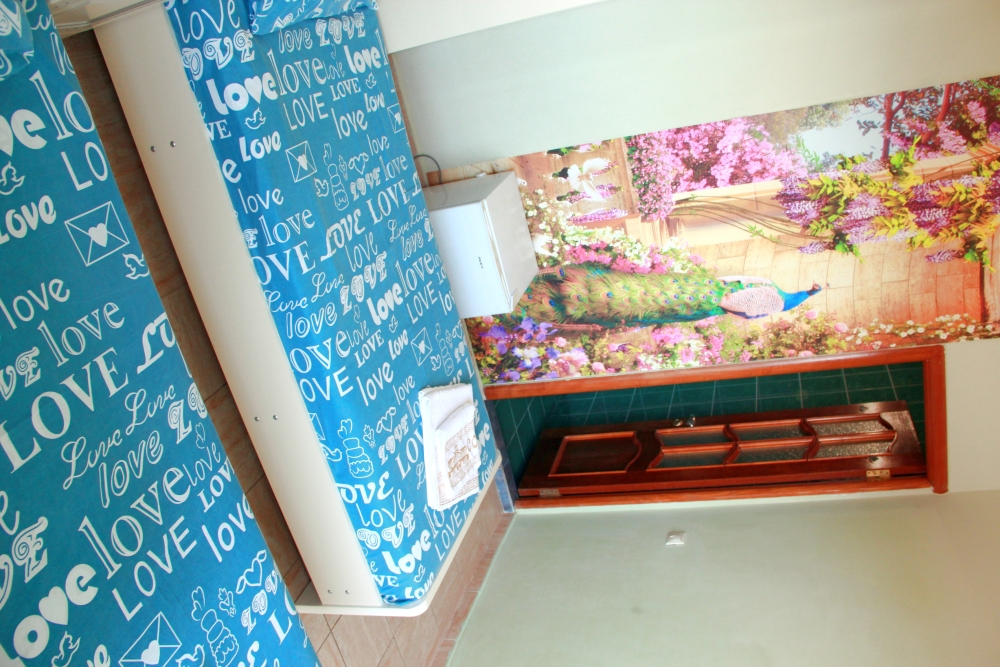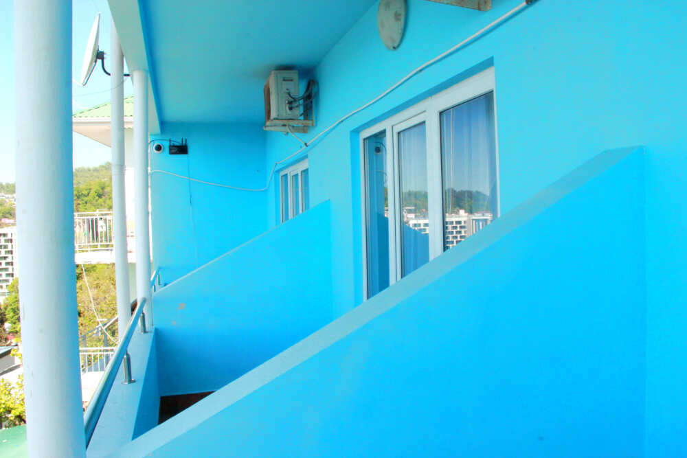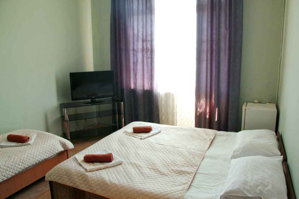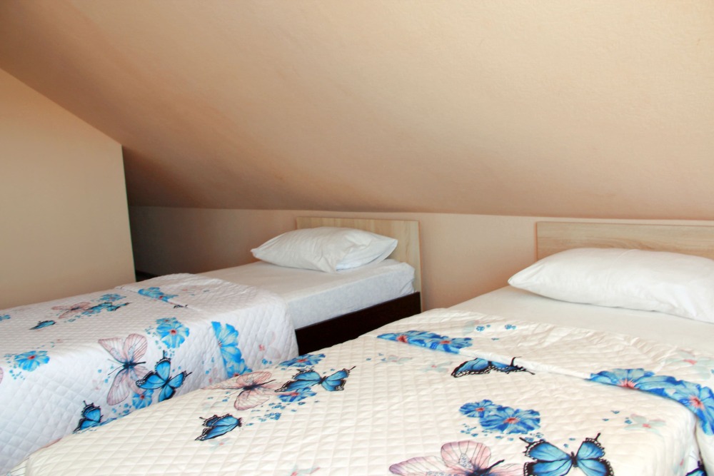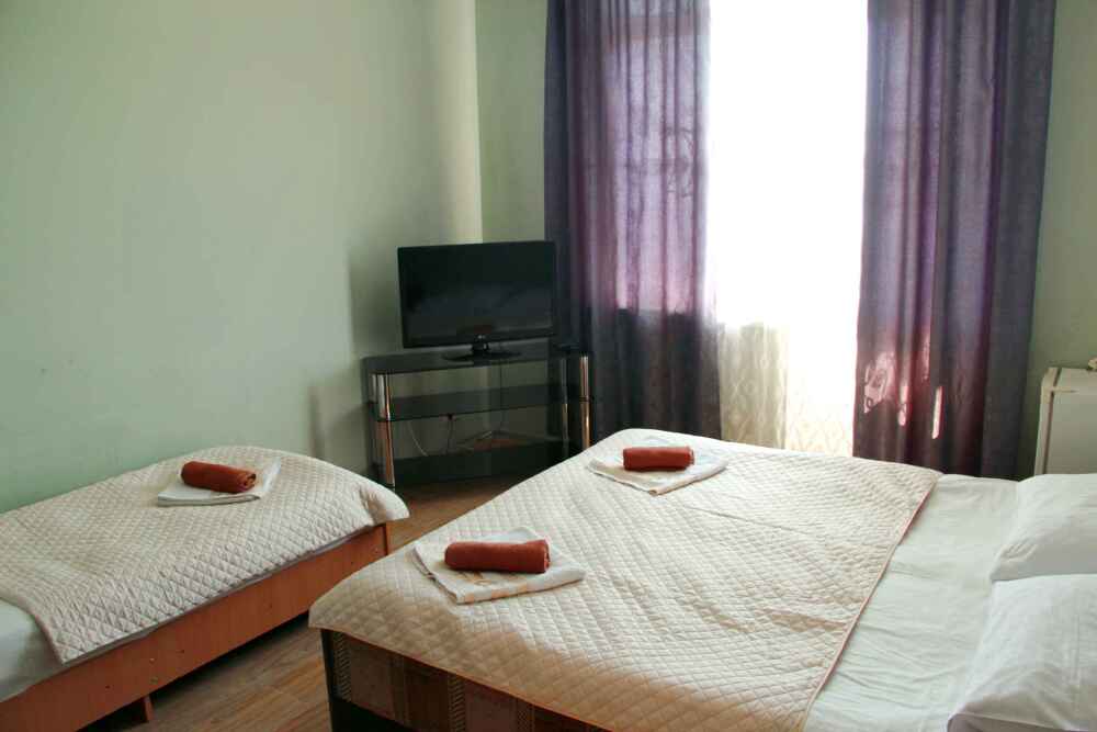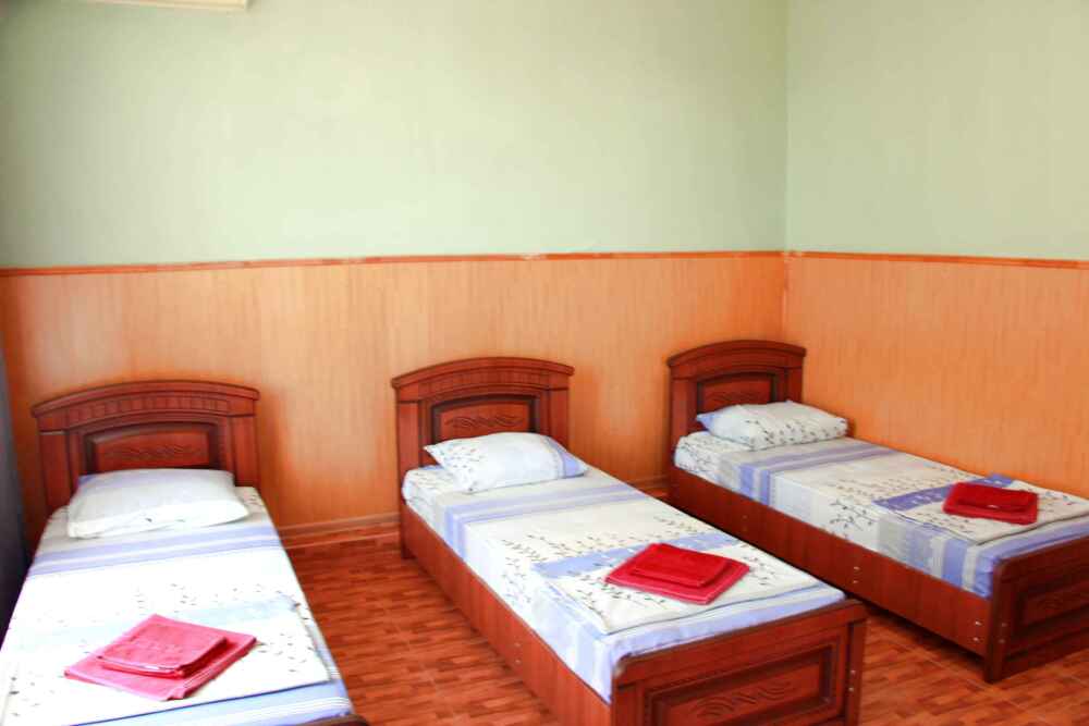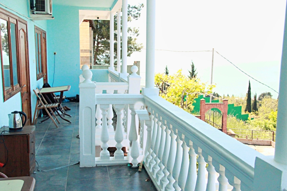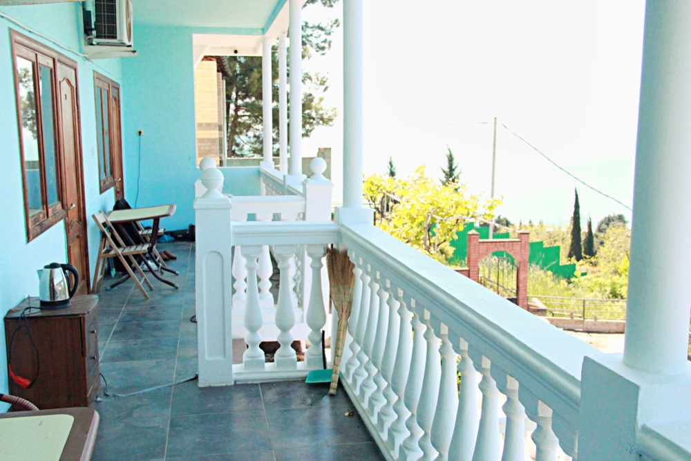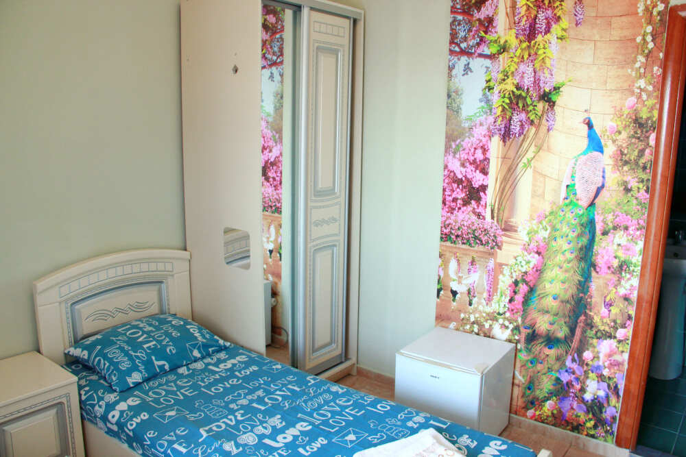 3-х местные номера категории «Эконом» с балконом - уютные однокомнатные номера, 2 этаж второго корпуса, в номере – три раздельные кровати либо 2-х спальный диван и 1-но спальная кровать, шкаф для одежды, прикроватные тумбочки, телевизор, мини-холодильник, кондиционер. В номере есть большой балкон с видом на море и внутренний двор гостевого дома. На балконе есть стол и стулья для отдыха. Санузел (ванна, туалет, умывальник) на 2 номера в коридоре рядом с номерами.