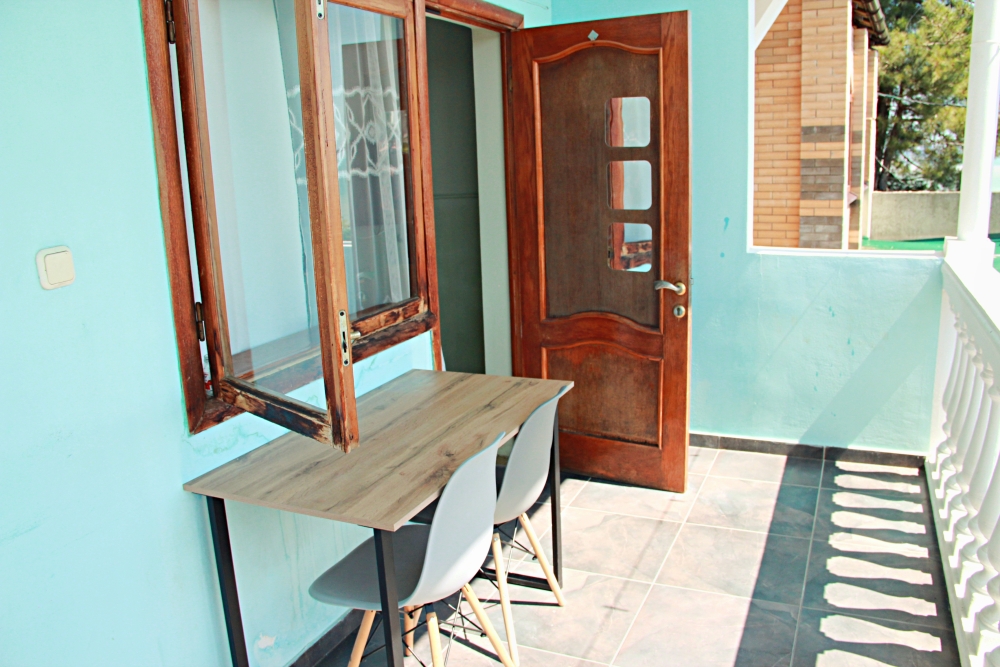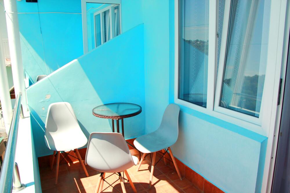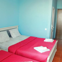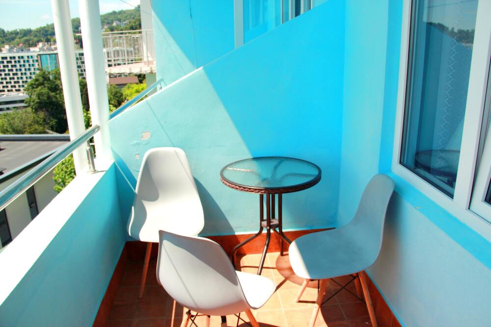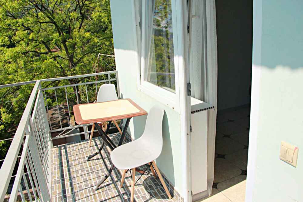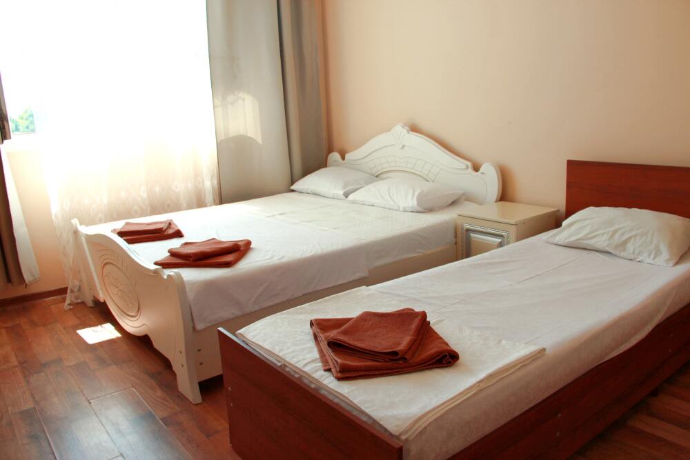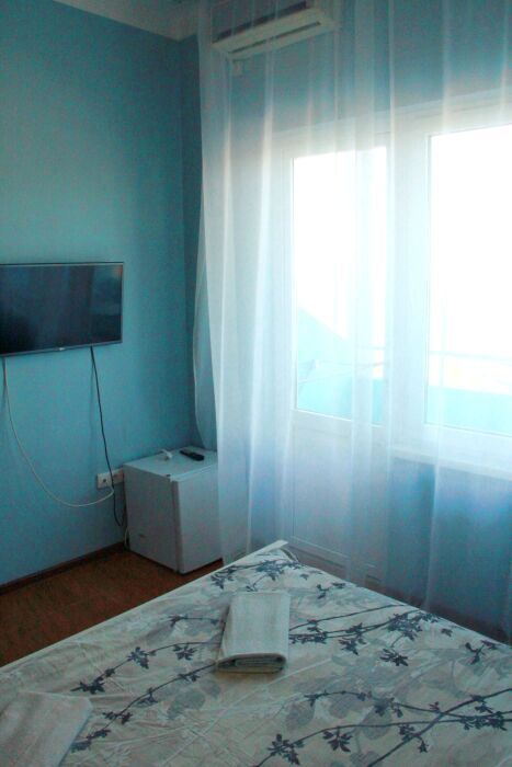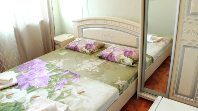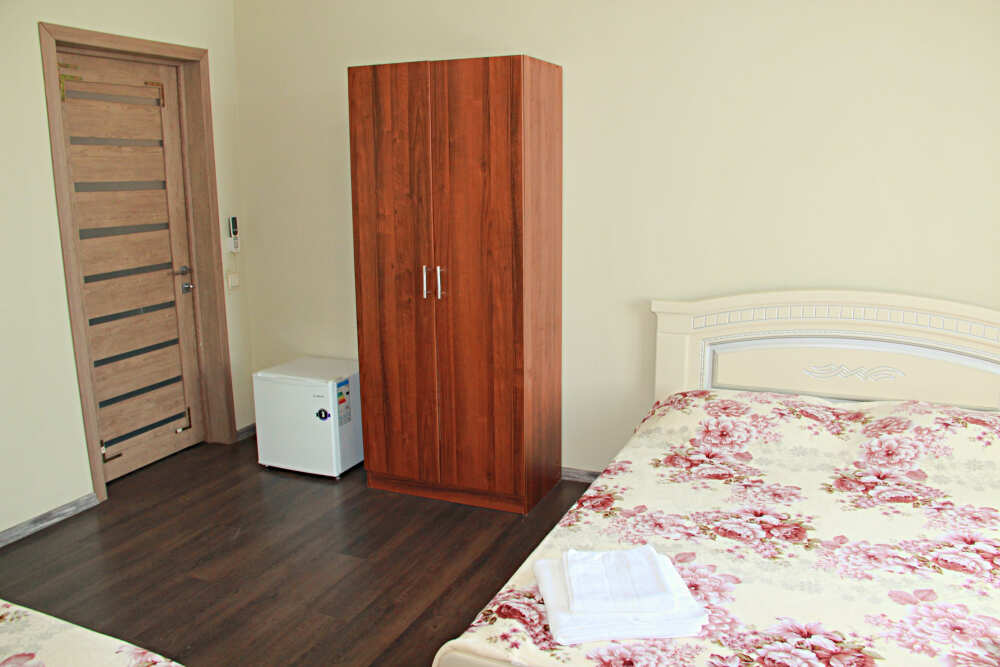 3-х местный номер категории «Стандарт» с балконом - однокомнатные уютные номера, расположенные на 2 этаже гостевого дома, в каждом номере 2-х спальная кровать+1-но спальная кровать, шкаф для одежды, прикроватные тумбочки, телевизор, мини-холодильник, кондиционер. Со всех номеров данной категории открывается потрясающий вид на море. Санузел (душ, туалет, умывальник) в номере. Гладильная доска на этаже рядом с номером. На балконе есть стол и стулья для отдыха.