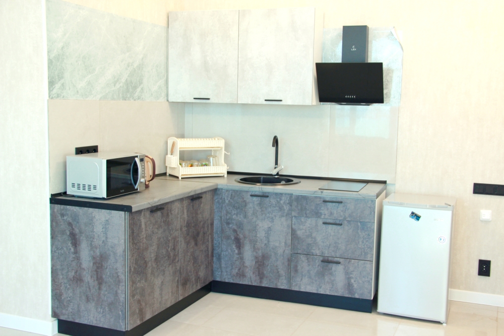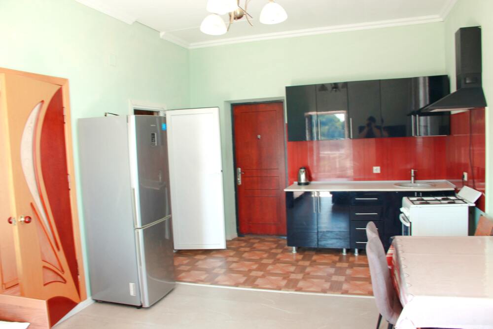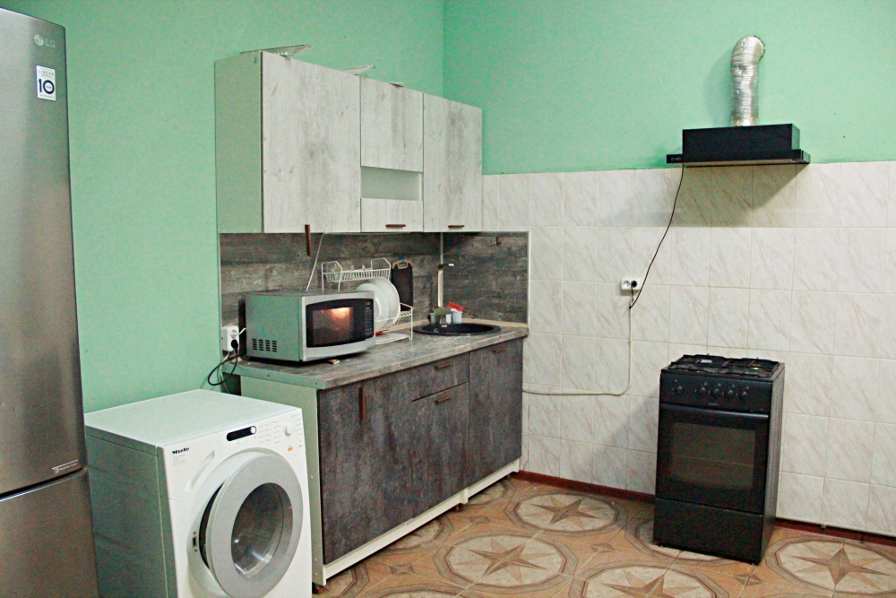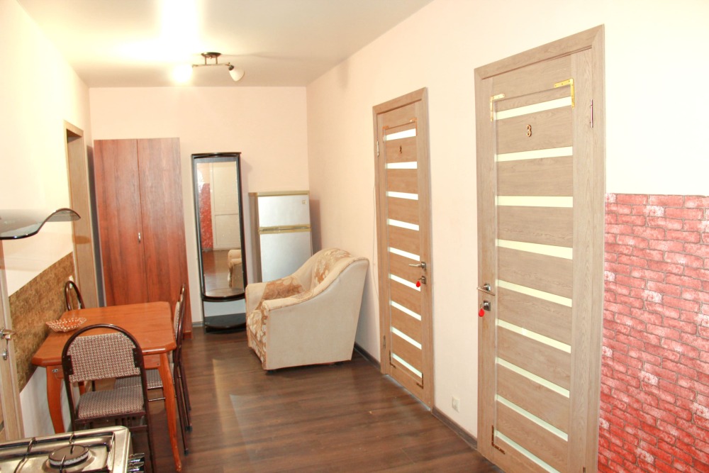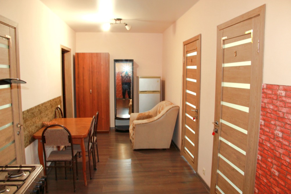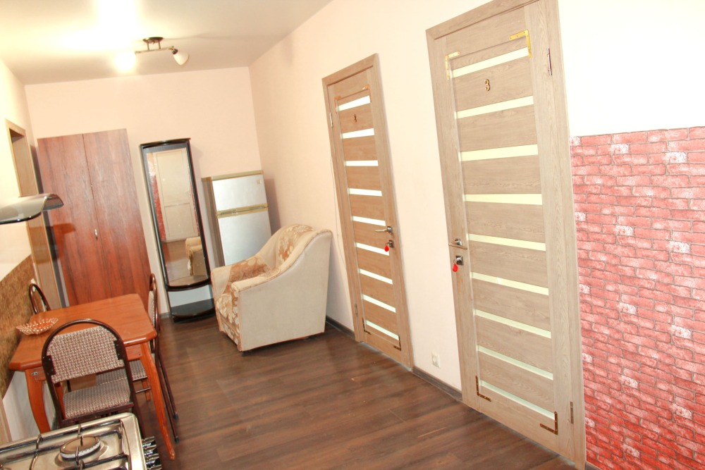5-ти местные 2-х комнатные семейные номера категории «Стандарт» - уютные 2-х комнатные номера, 4 этаж основного корпуса - в общем на 2 номера коридоре есть кухня, оборудованная всем необходимым - плитой, вытяжкой, холодильником, посудой, чайником, обеденным столом, стульями. Также в кухне гостиной есть шкаф, зеркало, кресло.