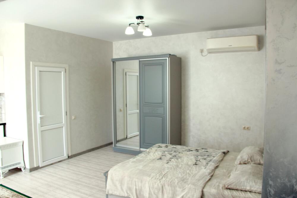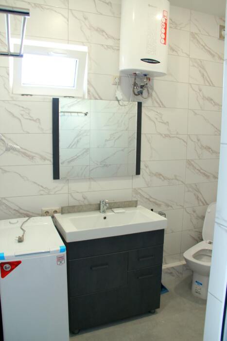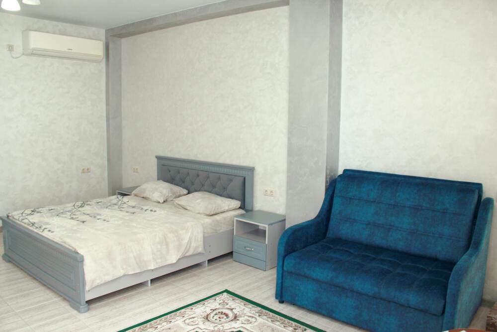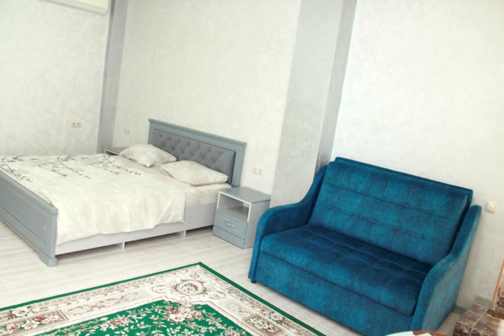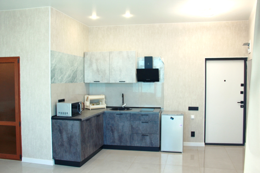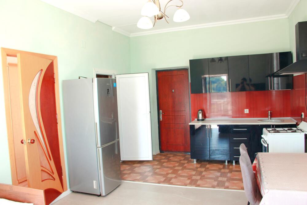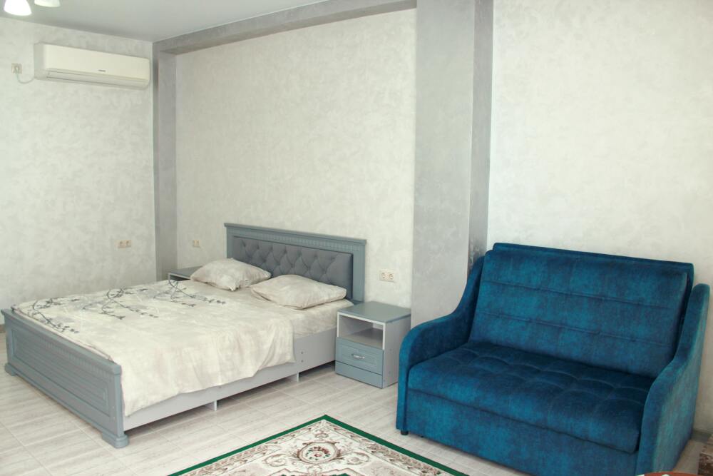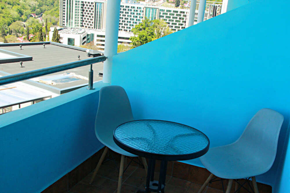 4-х местные номера категории «Студия» с балконом - однокомнатные уютные номера, расположенные на 1 и 2 этаже гостевого дома с отдельными входами, в каждом номере 2-х спальная кровать и 2-х спальный диван, кухонный гарнитур, индукционная плита с вытяжкой, микроволновка, посуда и столовые приборы, обеденный стол и стульями, шкаф для одежды, прикроватные тумбочки, телевизор, кондиционер, холодильник. Санузел (душ, туалет, умывальник, стиральная машина) в номере. С номера на втором этаже открывается потрясающий вид на море. На балконе есть стол и стулья для отдыха.